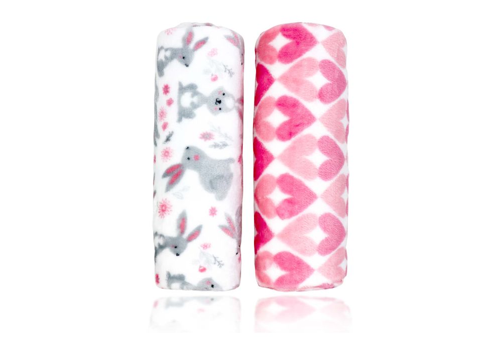 2 Pack Baby Blanket- Pink Bunnies and Hearts