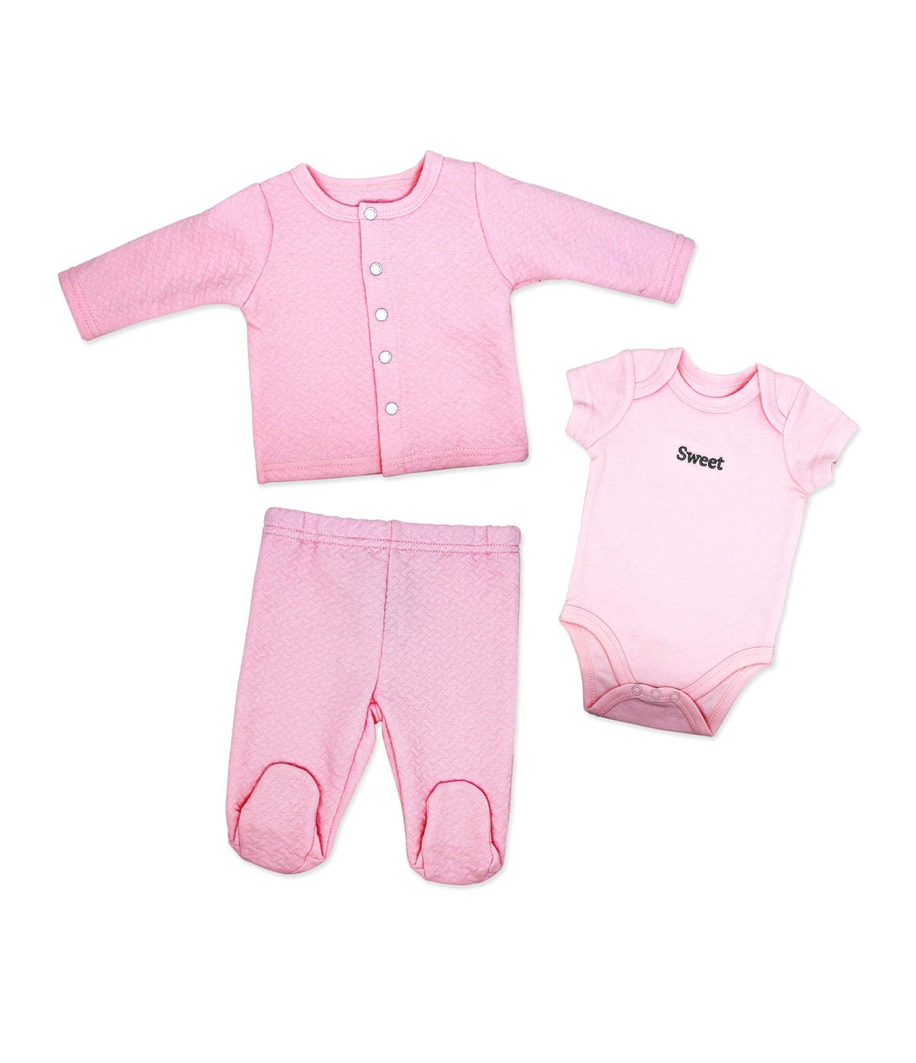 Set includes: Jacket, Footed Pant and Bodysuit