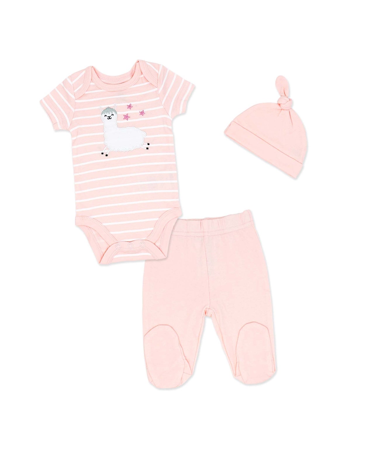 Set includes: Striped Bodysuit, Footed Pants and Knot Hat