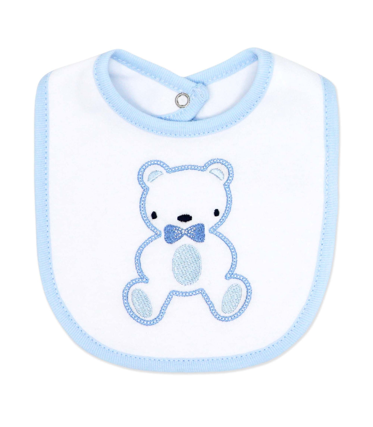 Set includes: Coverall, Interlock Bodysuit, Bib, Hat and Mitts