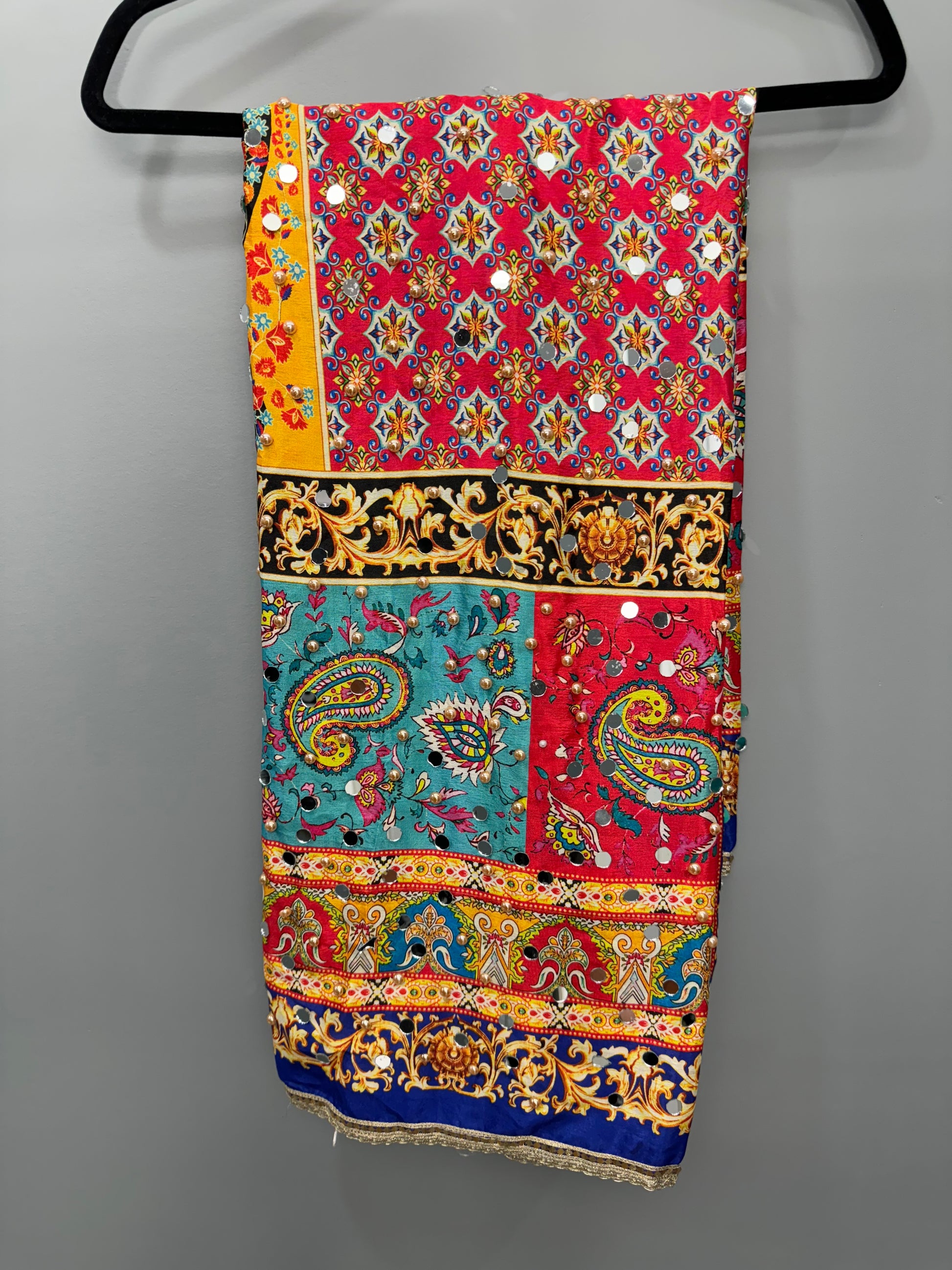 Whether draped over a salwar kameez, a lehenga, or styled as a statement accessory, this dupatta exudes elegance and versatility, making it perfect for weddings, festive celebrations, or cultural gatherings.