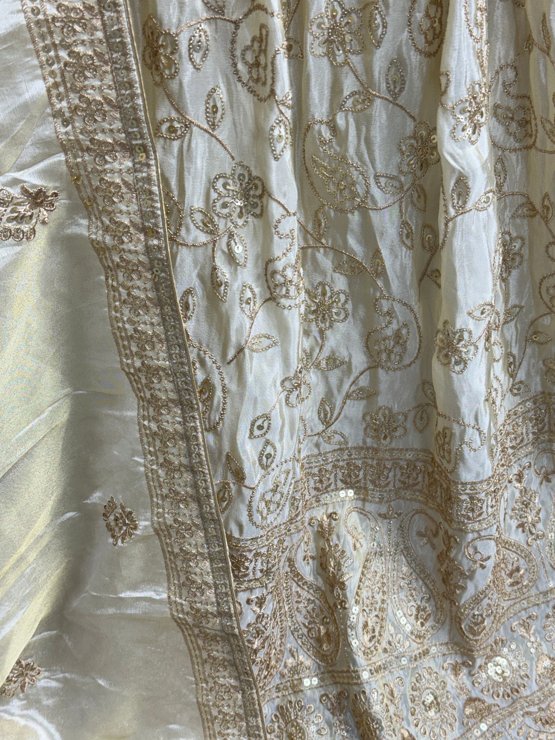 Expertly crafted with intricate sequence work, this lehenga is a true masterpiece. Its custom design showcases the perfect blend of traditional and modern elements, making it versatile for any occasion. Elevate your wardrobe with this stunning and unique piece.