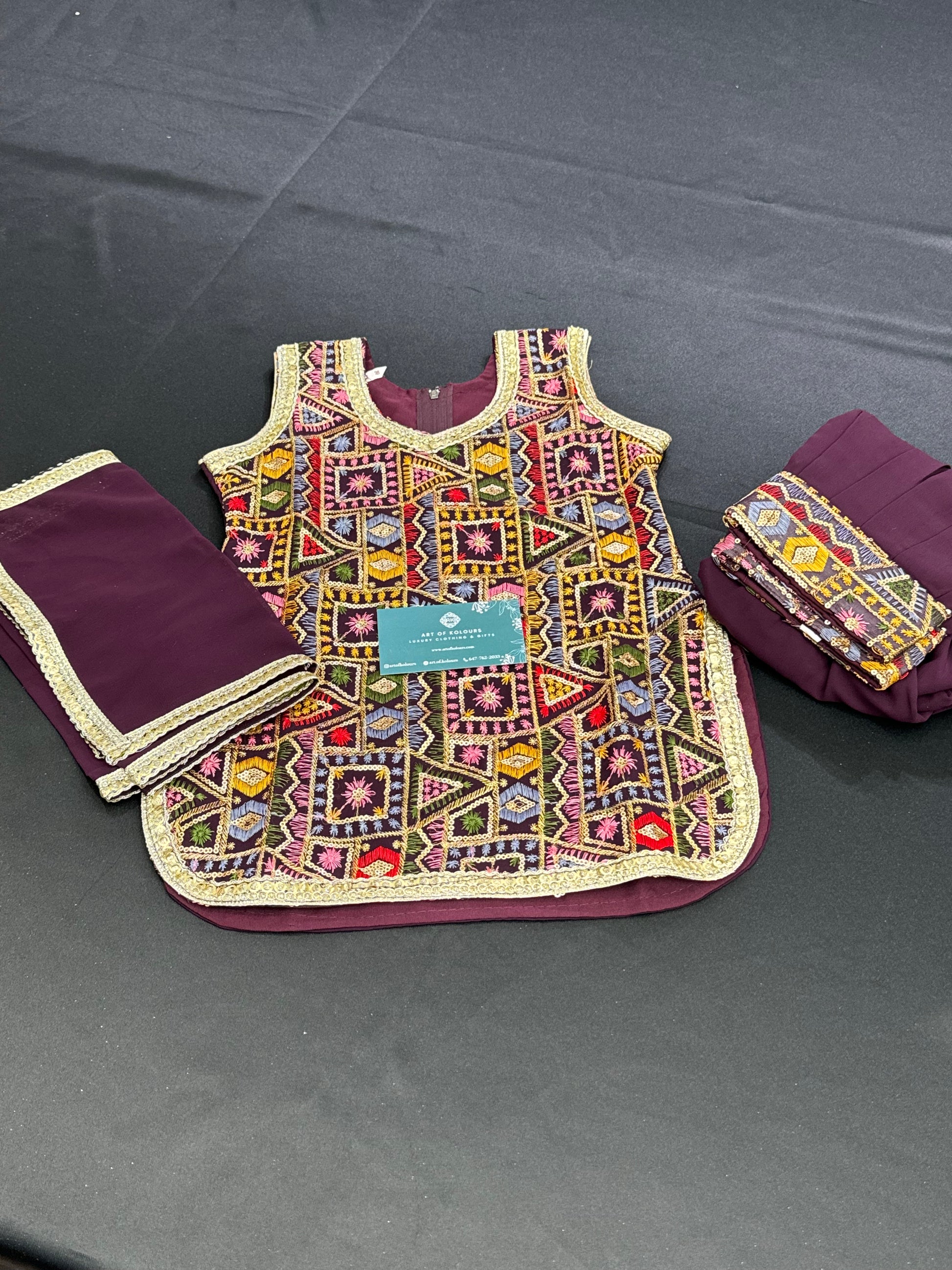Introduce your little one to the world of ethnic fashion with our Amber Kids Salwar Suit. This beautiful wine coloured suit features vibrant multi-coloured embroidery, adding a touch of elegance and charm. Made with high quality materials, it will provide comfort and style for your child. Perfect for any special occasion, make your child stand out with this stunning outfit.
