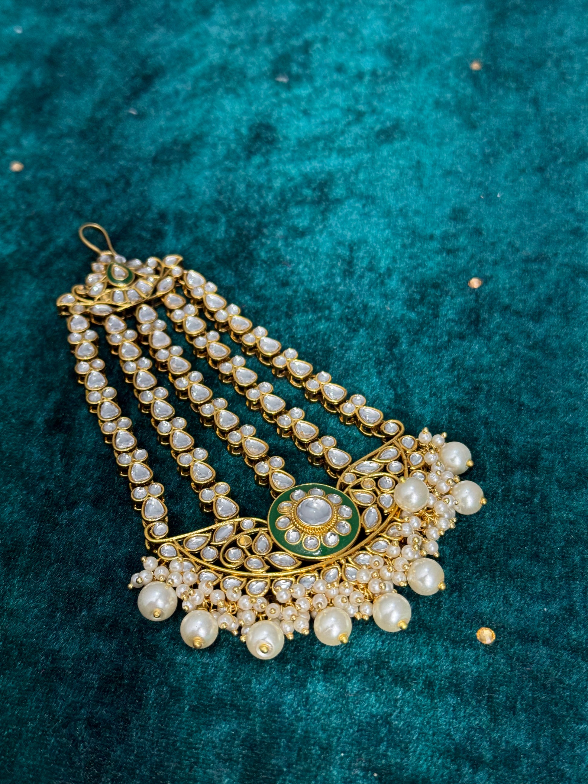 Complete your regal look with our exquisite collection of Head Accessories, featuring Tikkas, Paasas, Matha Patis, and Sheeshphools. These timeless adornments are designed to bring elegance and sophistication to bridal and festive ensembles.