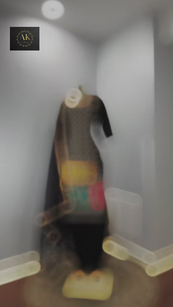 Elevate your style with this elegant black salwar kameez, featuring intricate multi-colored embroidery that adds a vibrant touch to its classic design. The richly detailed patterns on the kameez exude a royal charm, while the matching black dupatta with delicate border work completes the ensemble. Perfect for festive occasions or evening gatherings, this outfit blends tradition with contemporary flair, making it an essential piece for any wardrobe.