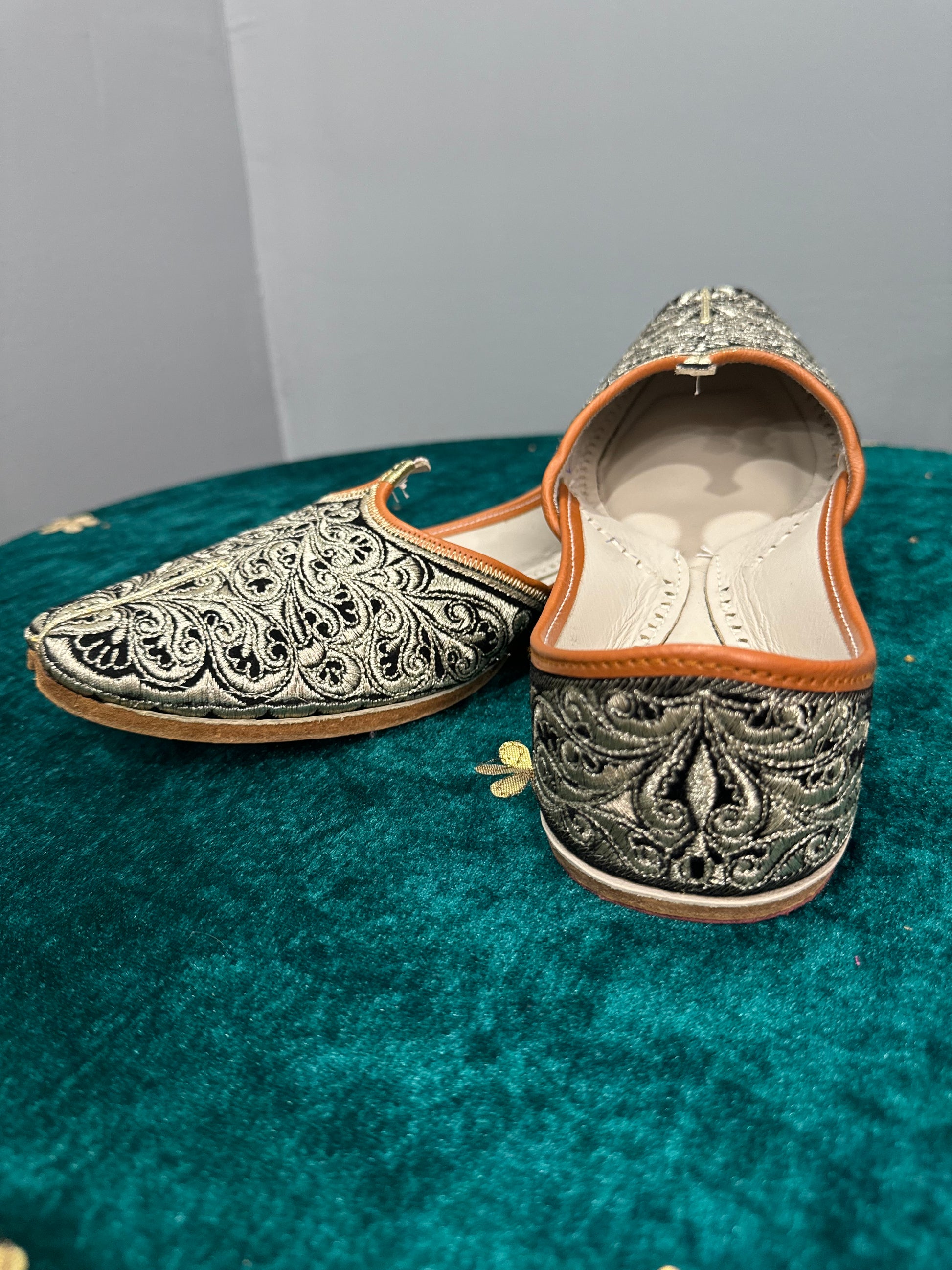 Experience superior craftsmanship with our Black Men's Jutti, adorned with intricate silver thread work. Made from premium materials, these juttis provide unparalleled comfort and style. Elevate your wardrobe and step out in confidence with this timeless footwear.