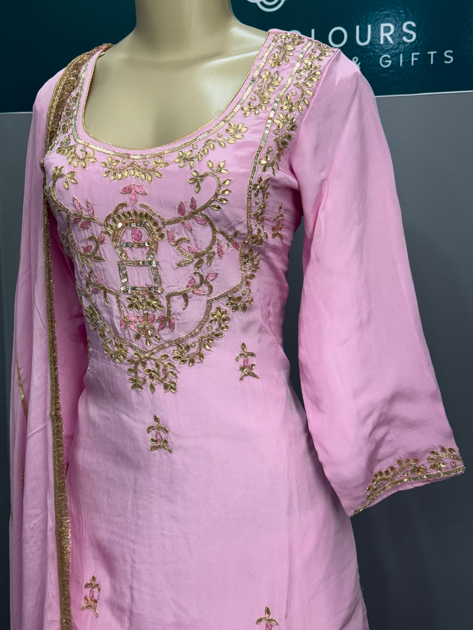Enhance your style with this beautiful Handwork Salwar Suit. This stunning suit features a gorgeous Handwork for a touch of elegance. The included dupatta completes the look. Elevate your wardrobe with this must-have piece.