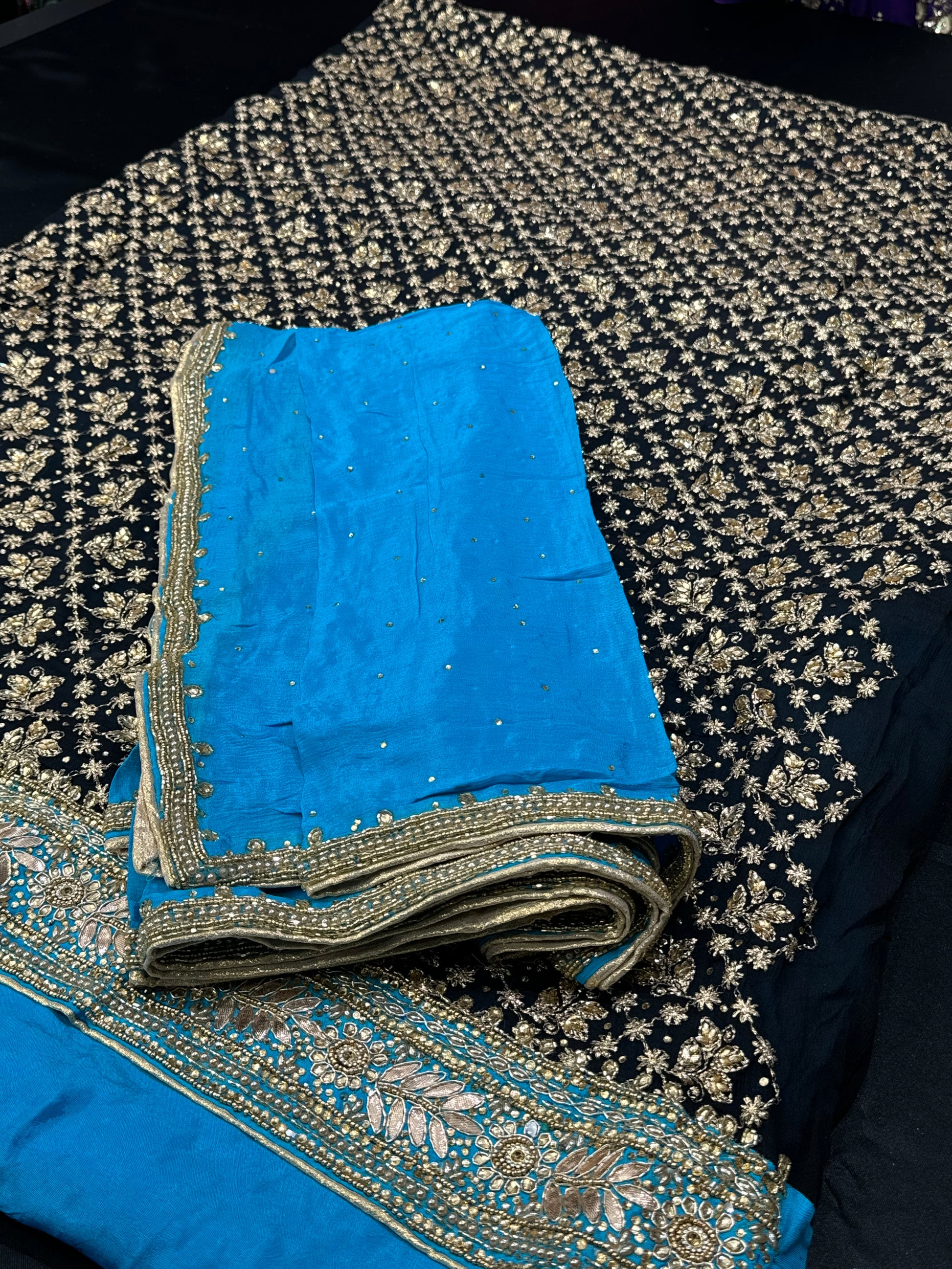 Elevate your style with the Asmani Heritage Sky Blue Unstitched Suit. Featuring heavy all over work and a beautiful border at the bottom, this suit exudes elegance and sophistication. Complete the look with the heavy dupatta included. Perfect for any special occasion.