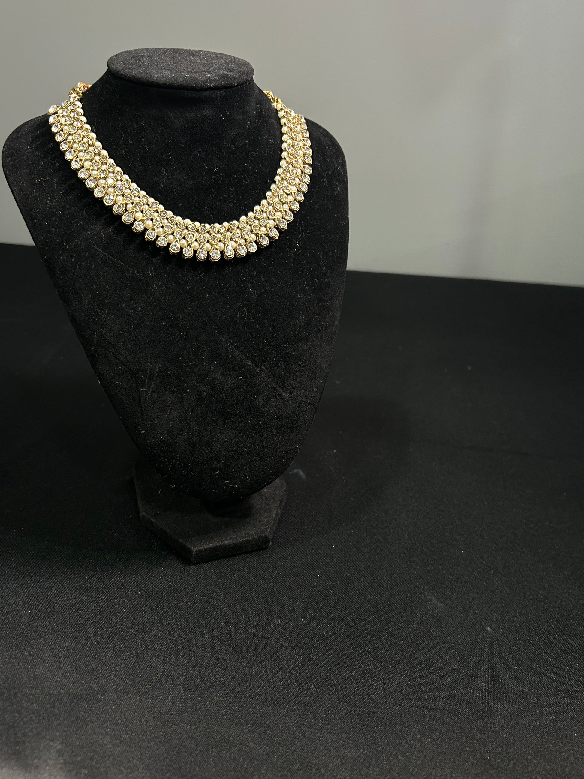 This elegant Necklace set will add a touch of glamour to any outfit. The intricate designs of the necklace and earrings, combined with the beautiful stones, will make you stand out in any crowd. Handcrafted with precision, this set is sure to impress.
