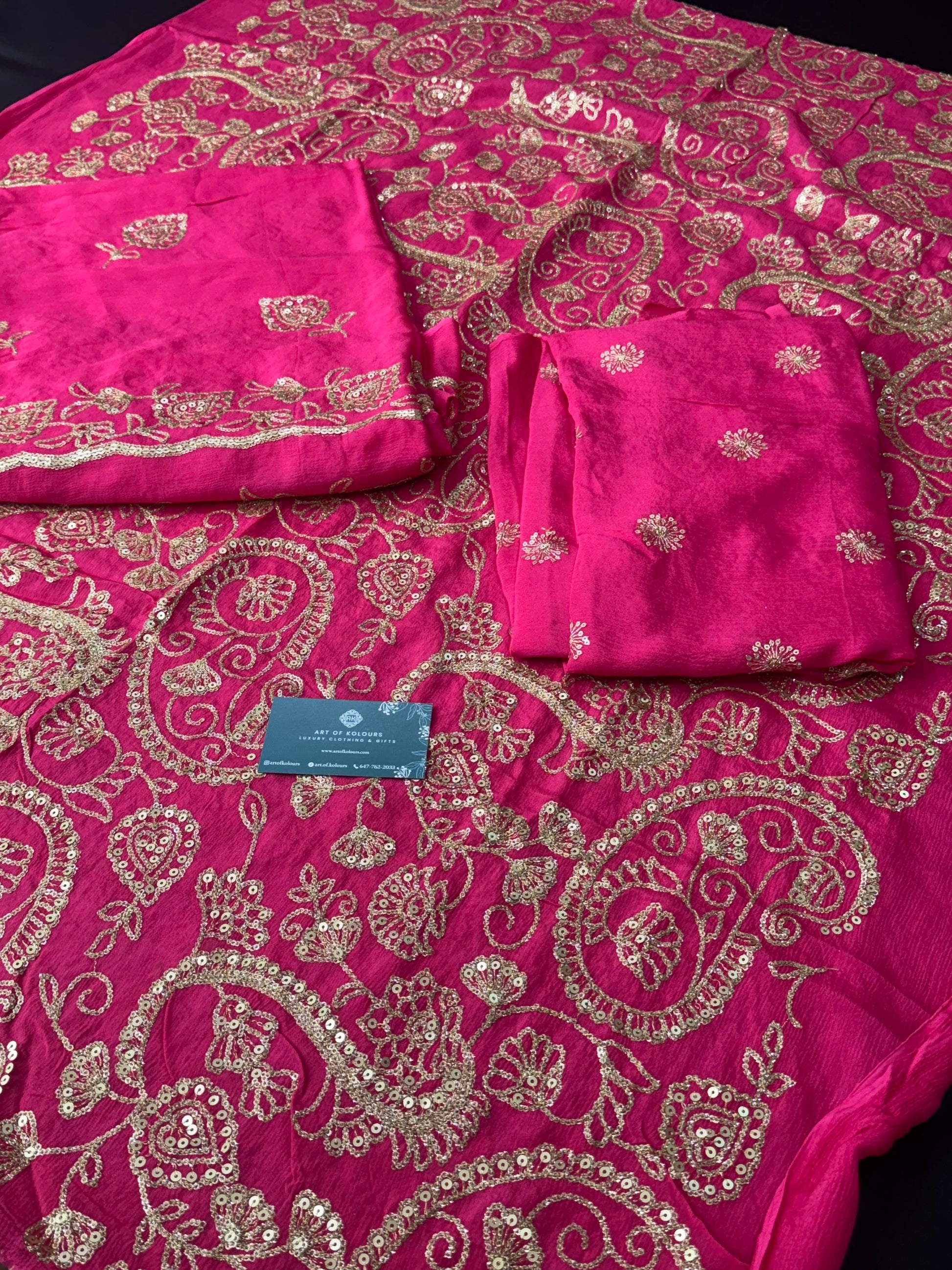 Introducing the premium Garm Gulab Sippi Unstitched Suit, a must-have for any fashion lover. This suit features intricate heavy embroidery on the top, bottom, and on the included dupatta. With its elegant and detailed design, this suit will make you stand out at any event.