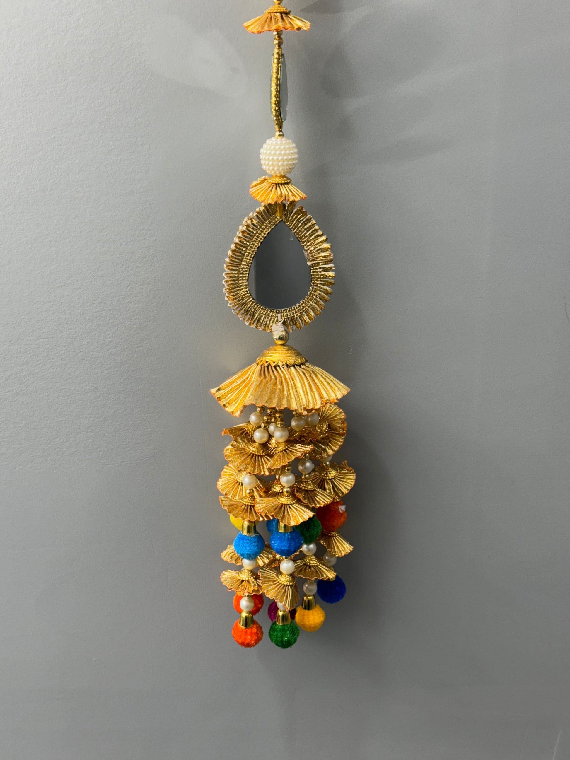 This Gold Prandi is a beautiful and versatile accessory for traditional Indian fashion. Made with vibrant colors and intricate designs, it adds a touch of elegance to any outfit. The Prandi is made from high-quality materials and is perfect for weddings, festivals, and other special occasions.