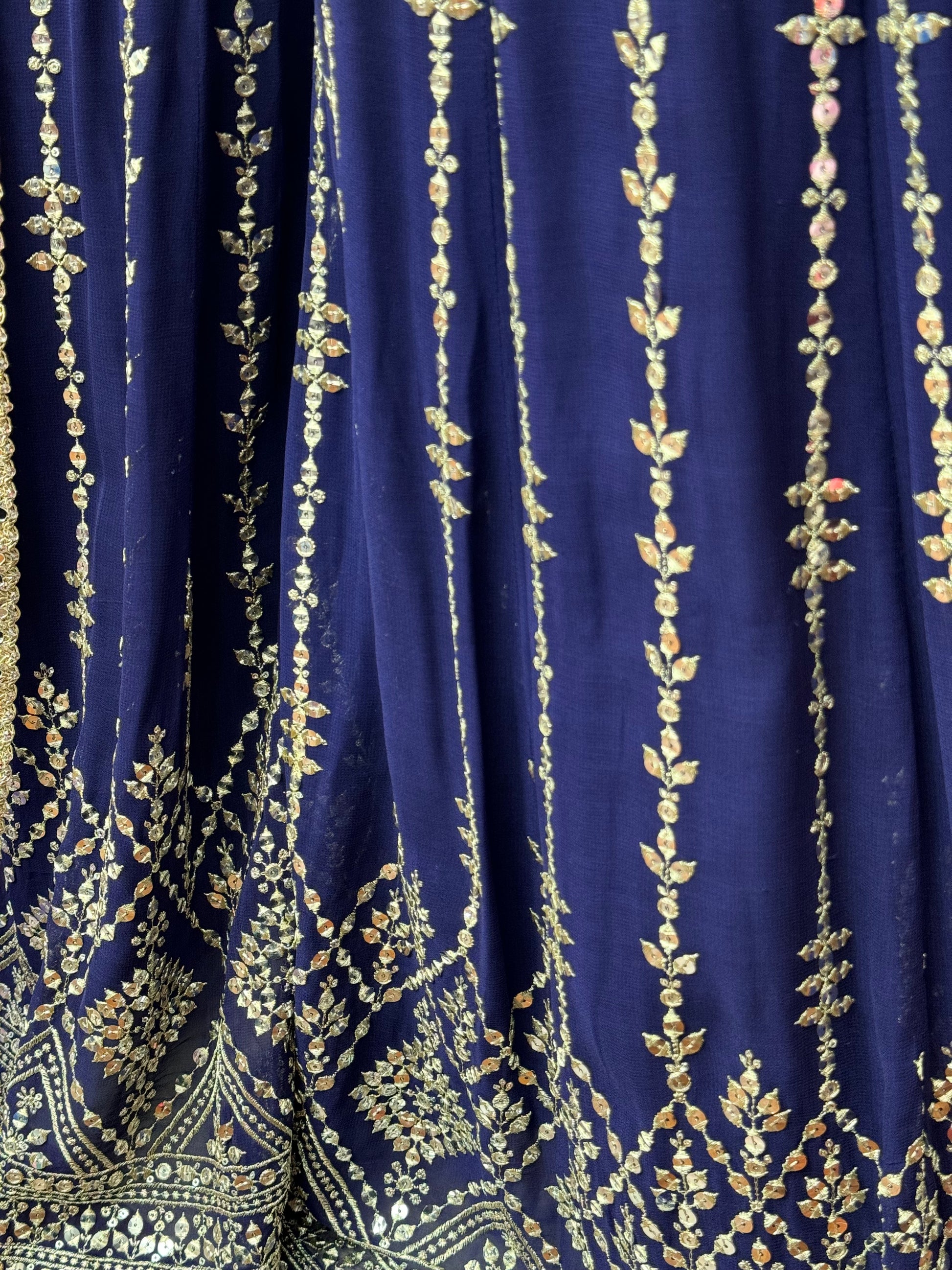 The Sequence Work All Black Lehenga is a beautifully designed lehenga with intricate sequence work on a sleek black fabric. Its exquisite detailing and elegant silhouette make it a perfect choice for any formal occasion. Made with high-quality materials, it offers both style and comfort.