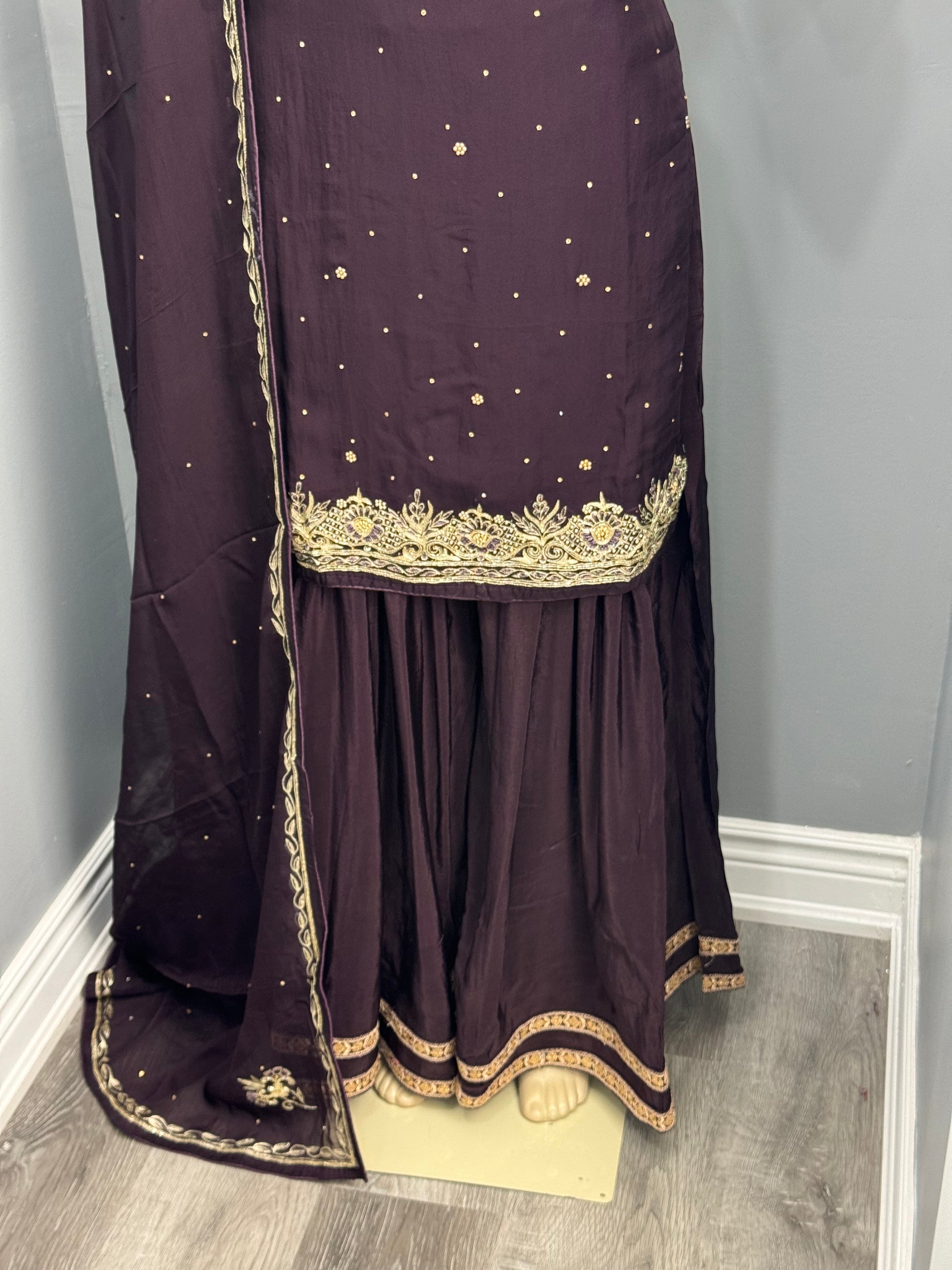 Handwork Sharara Suit- Dark Purple