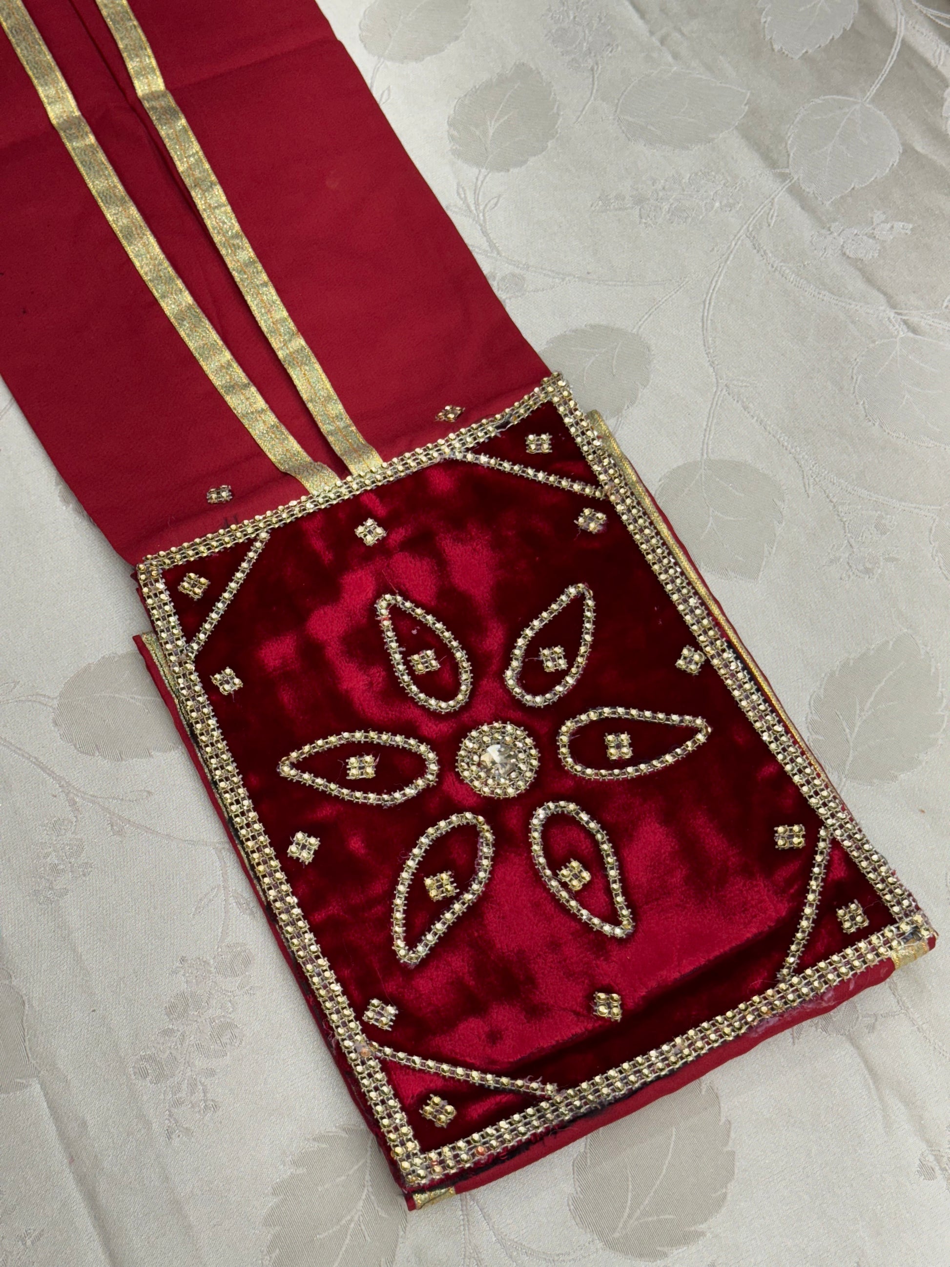 Elevate your wedding attire with our exquisite collection of Pallas, the perfect accessory to enhance your traditional look. Designed with luxurious fabrics such as velvet, and chiffon, our pallas feature intricate embroidery and shimmering embellishments that exude elegance and grace.