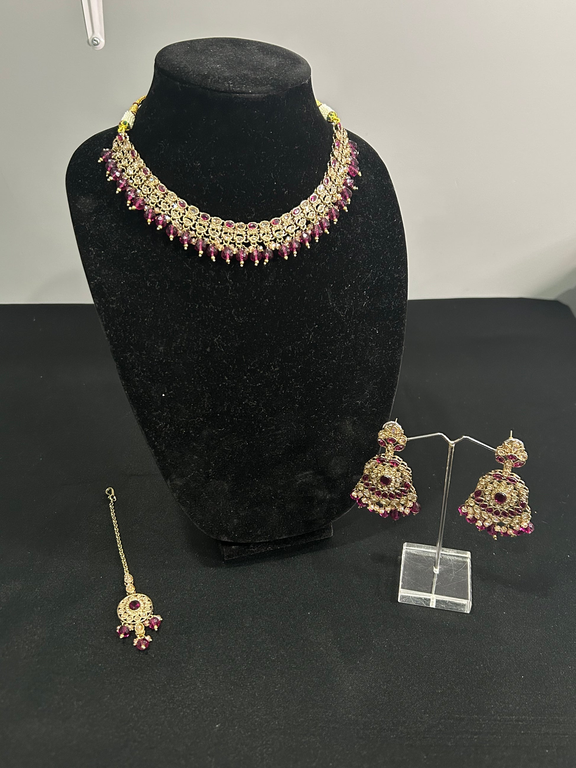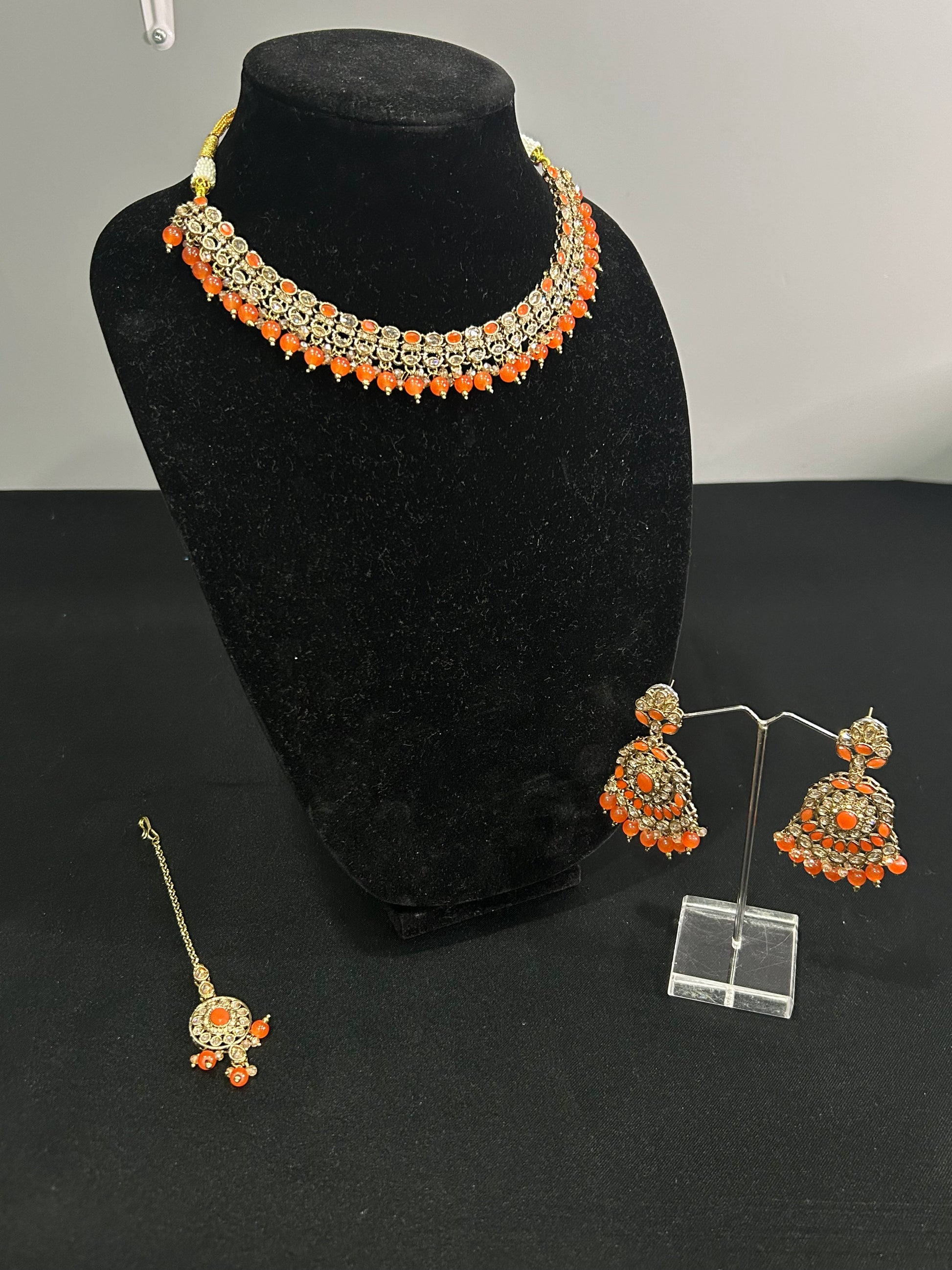This elegant Necklace set will add a touch of glamour to any outfit. The intricate designs of the necklace and earrings, combined with the beautiful stones, will make you stand out in any crowd. Handcrafted with precision, this set is sure to impress.