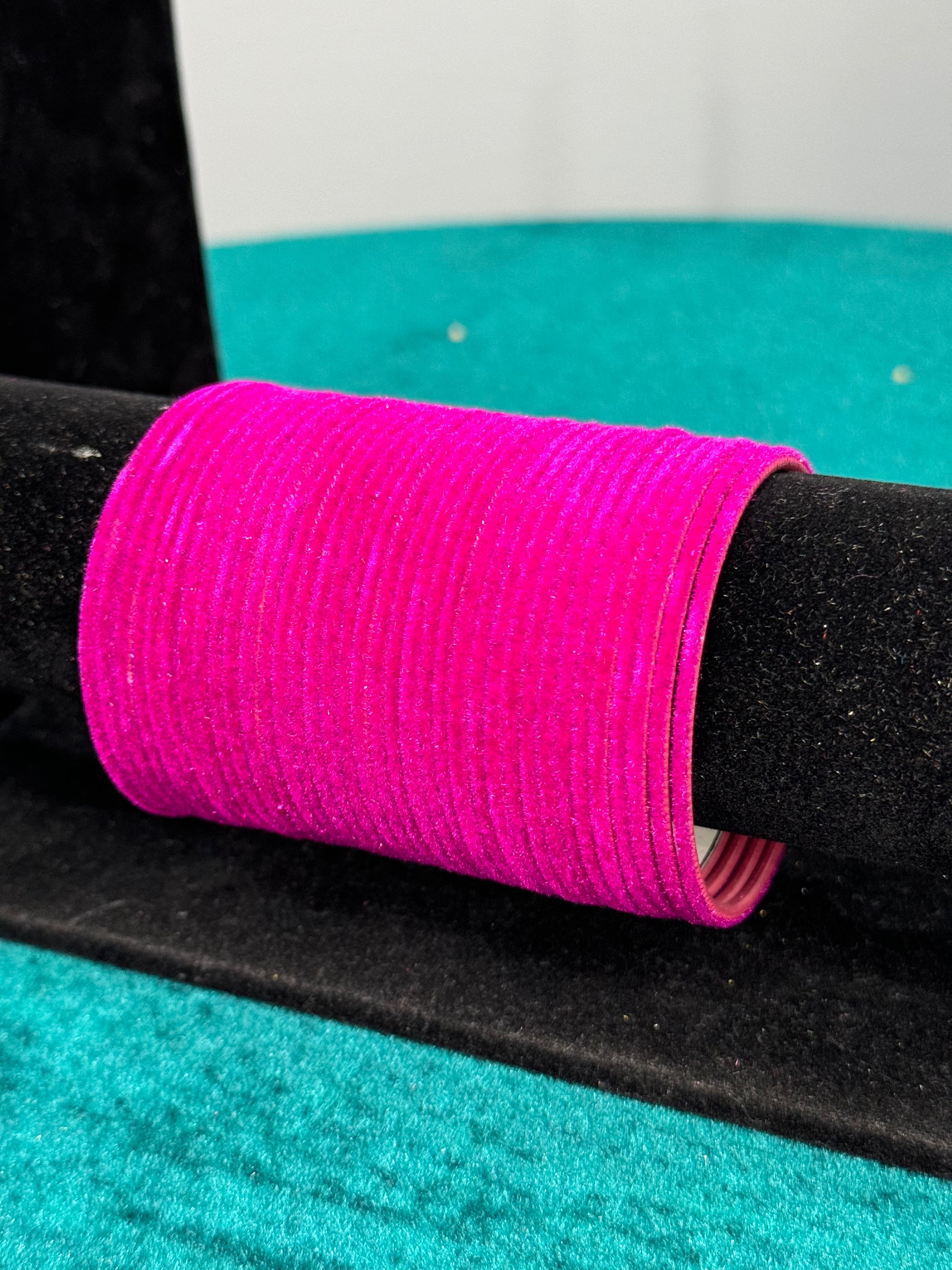 These plain velvet bangles are a stylish addition to any outfit. Made from high-quality velvet material, they provide a soft and comfortable fit. The plain design adds a touch of elegance and versatility, making them suitable for any occasion. Upgrade your accessory game with these beautiful bangles.