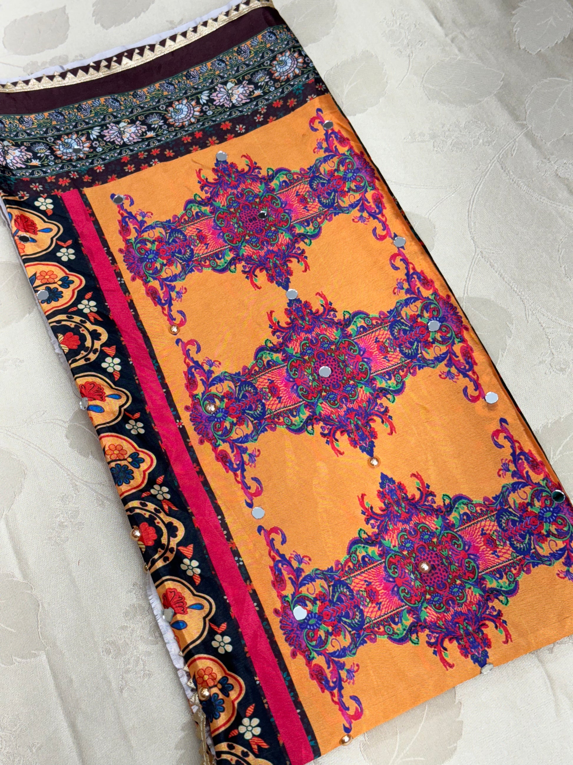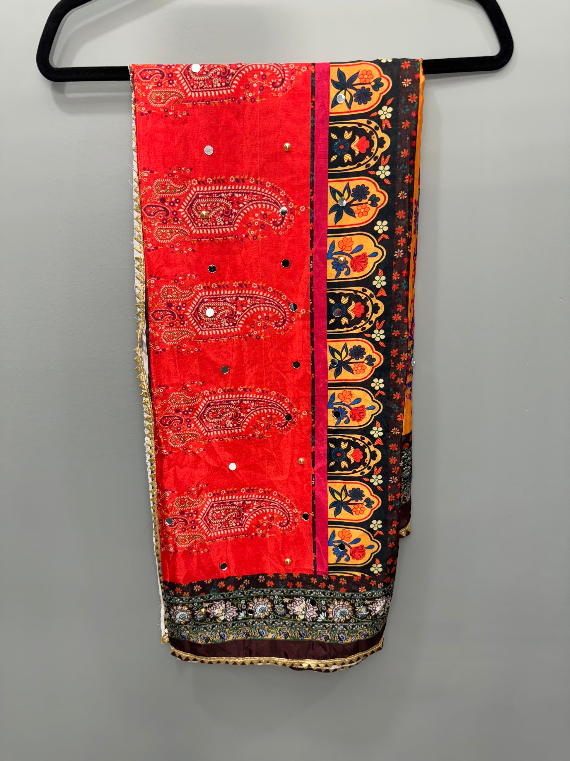 Whether draped over a salwar kameez, a lehenga, or styled as a statement accessory, this dupatta exudes elegance and versatility, making it perfect for weddings, festive celebrations, or cultural gatherings.