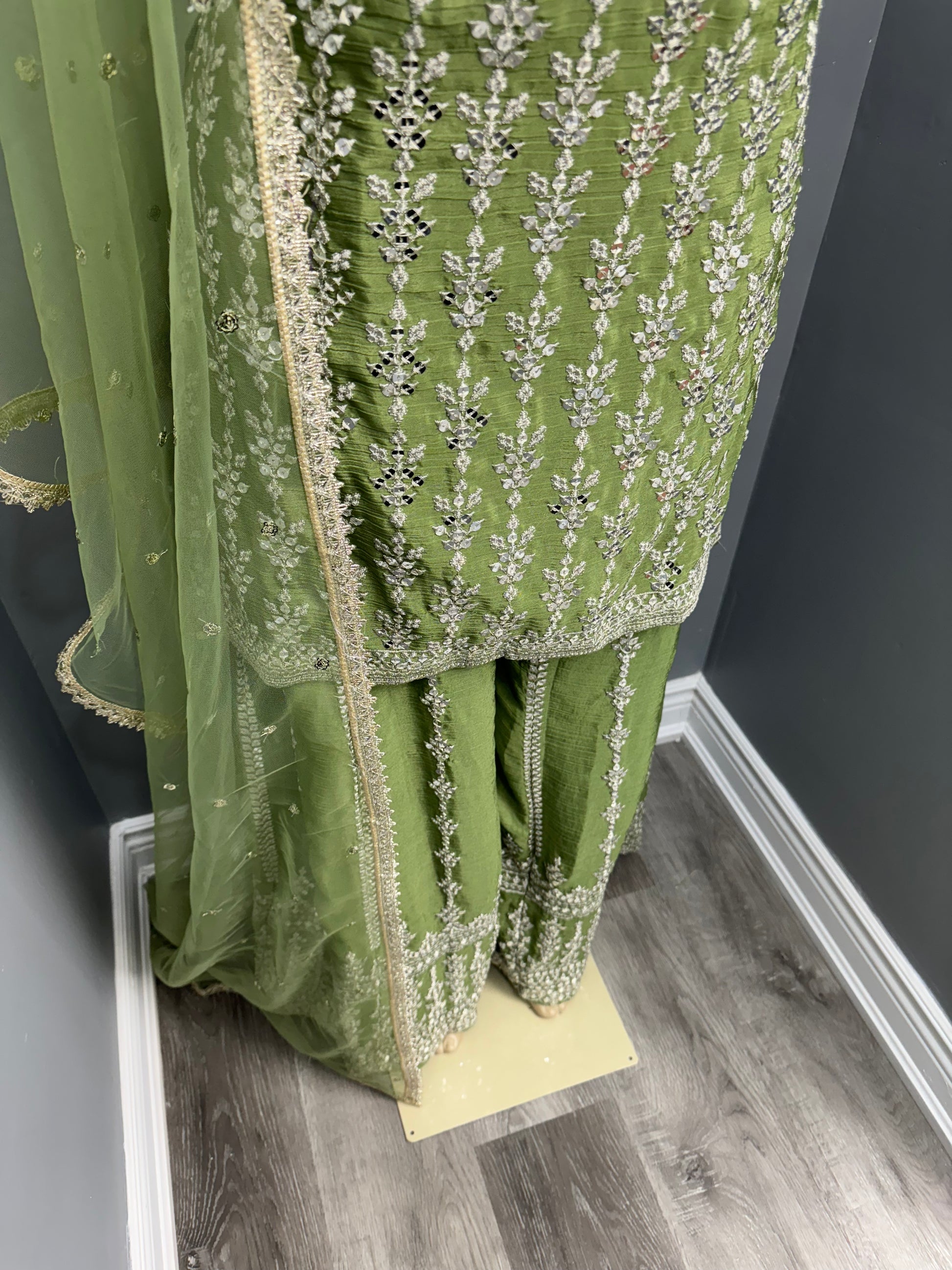 This Jaansi Sharara Suit is expertly crafted with beautiful sequence work, creating a truly beautiful and elegant garment. Made with the highest quality materials, it is both comfortable and stylish. Perfect for any occasion, this suit is sure to make you stand out in a crowd.