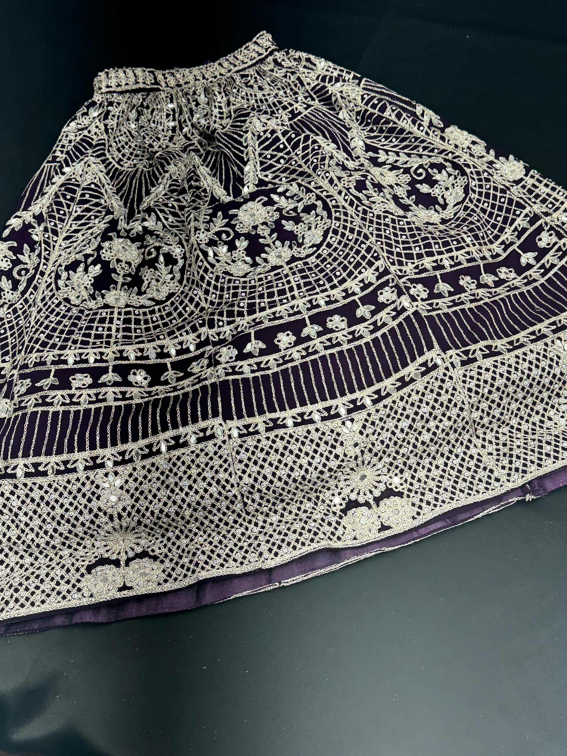 This stunning Kirit Kids Lehenga features intricate embroidery and sparkling mirror work, creating a beautiful and eye-catching dark purple lehenga. Perfect for special occasions, your child will feel like a princess in this elegant and high-quality garment.