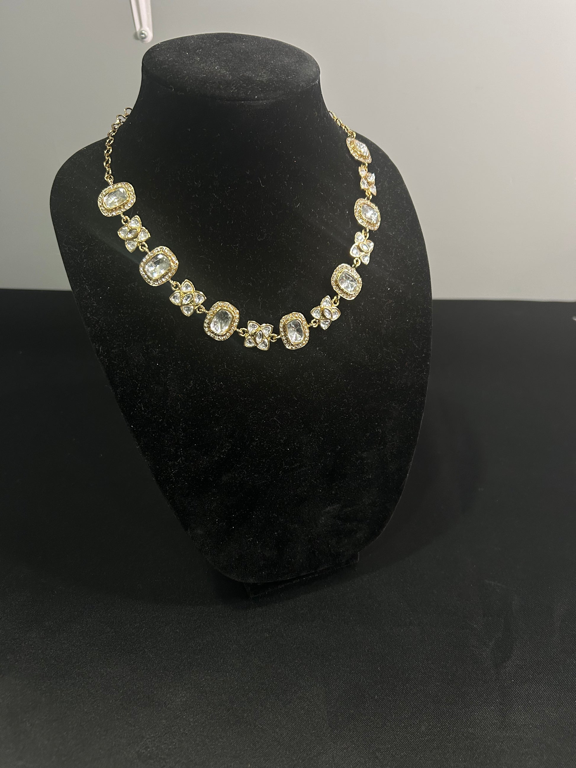 This elegant Necklace set will add a touch of glamour to any outfit. The intricate designs of the necklace and earrings, combined with the beautiful stones, will make you stand out in any crowd. Handcrafted with precision, this set is sure to impress.