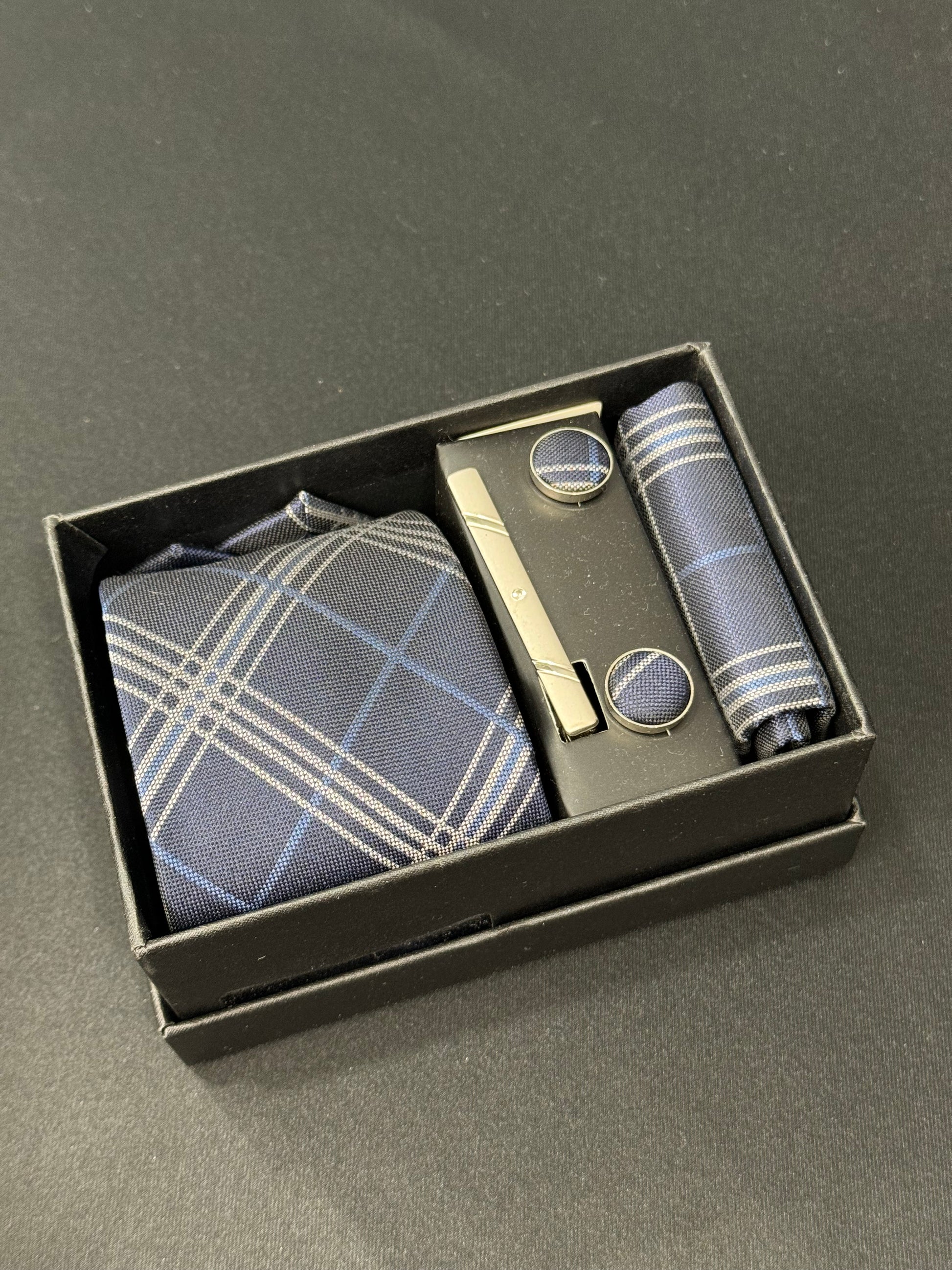 Increase sophistication with the Timeless Charm essential tie set for every man. Includes tie, pocket square, cuff links, and tie pin for a complete, polished look. Elevate your style with confidence and ease.