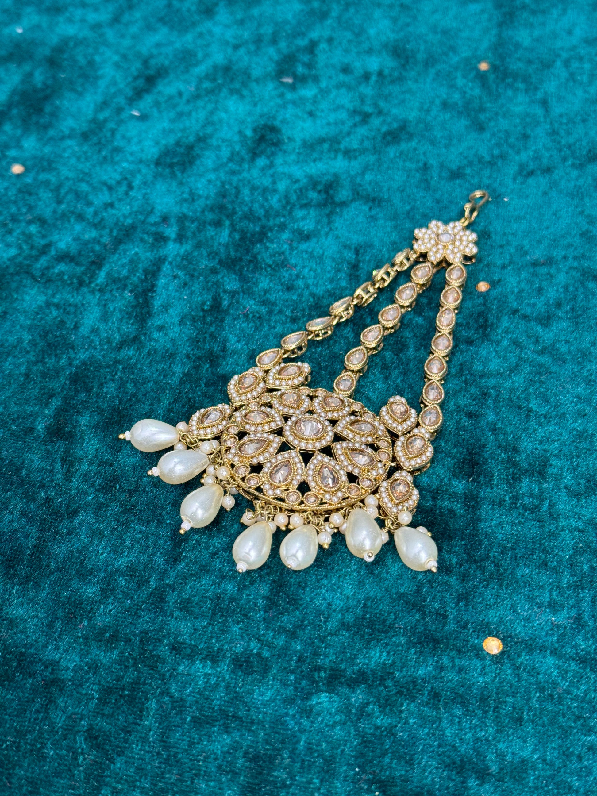 Complete your regal look with our exquisite collection of Head Accessories, featuring Tikkas, Paasas, Matha Patis, and Sheeshphools. These timeless adornments are designed to bring elegance and sophistication to bridal and festive ensembles.