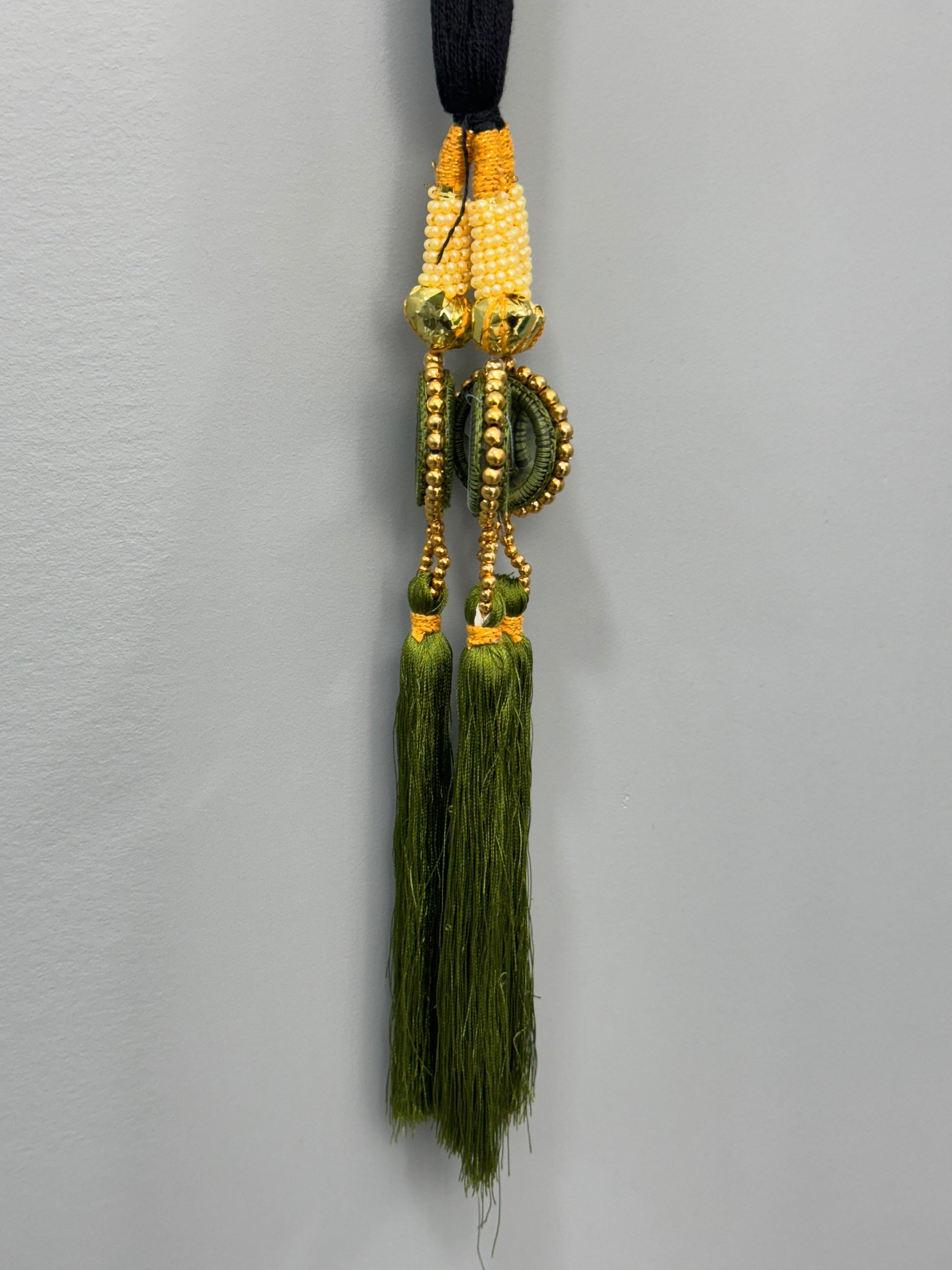 The Parandi is a traditional accessory often used in Punjabi culture to adorn braids. The double-layer design adds a rich and intricate aesthetic, with purple thread complementing the opulence of gold embellishments. It’s typically crafted for festive occasions, weddings, or cultural events, pairing beautifully with vibrant Punjabi suits or lehengas to enhance the overall look.