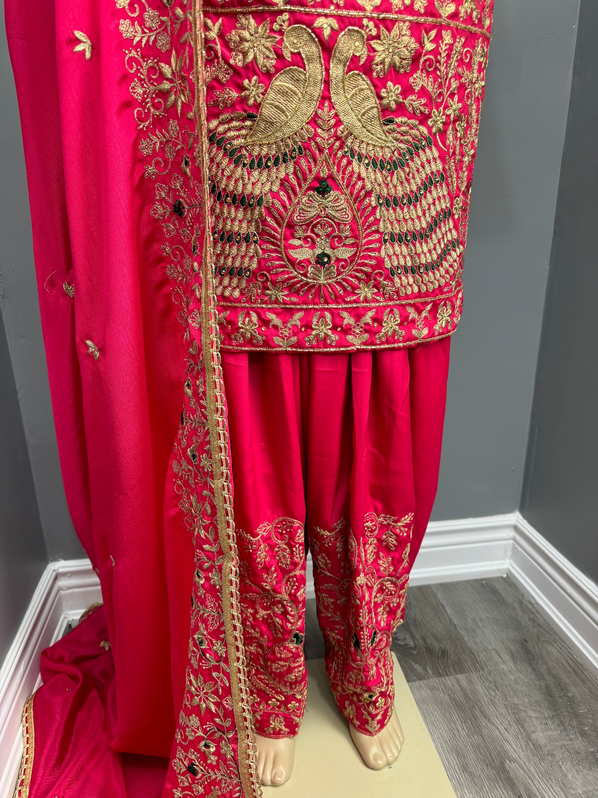 Elevate your ethnic style with our Morni Wala Baag Salwar Suit! Made on crepe fabric, the beautifully crafted suit features intricate heavy work and a gorgeous work Salwar. The chinon dupatta adds a touch of elegance with its stunning work. Perfect for any occasion, this suit is sure to make a statement.