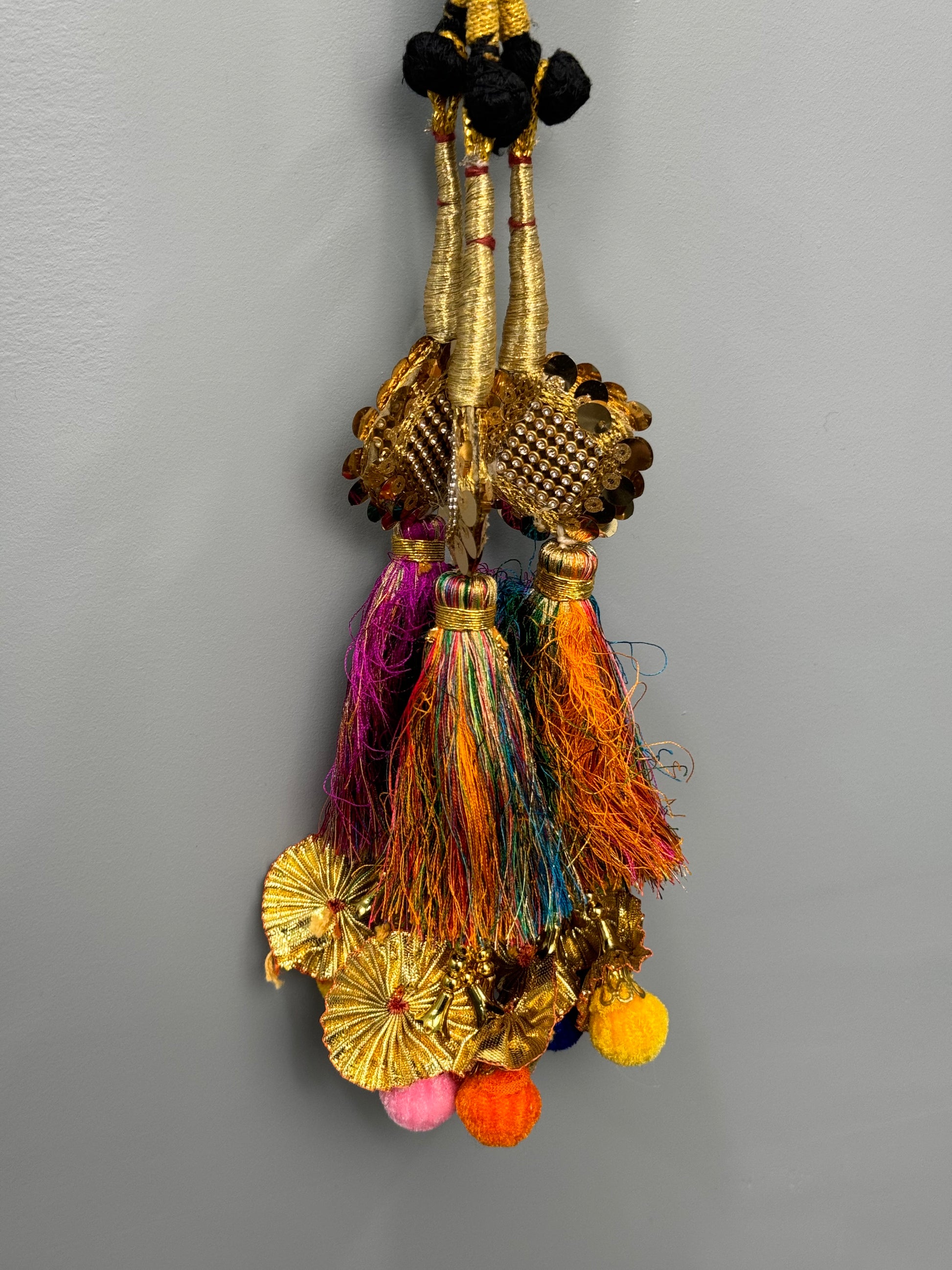 This Multi Colour Latkan Prandi is a beautiful and versatile accessory for traditional Indian fashion. Made with vibrant colors and intricate designs, it adds a touch of elegance to any outfit. The Prandi is made from high-quality materials and is perfect for weddings, festivals, and other special occasions.