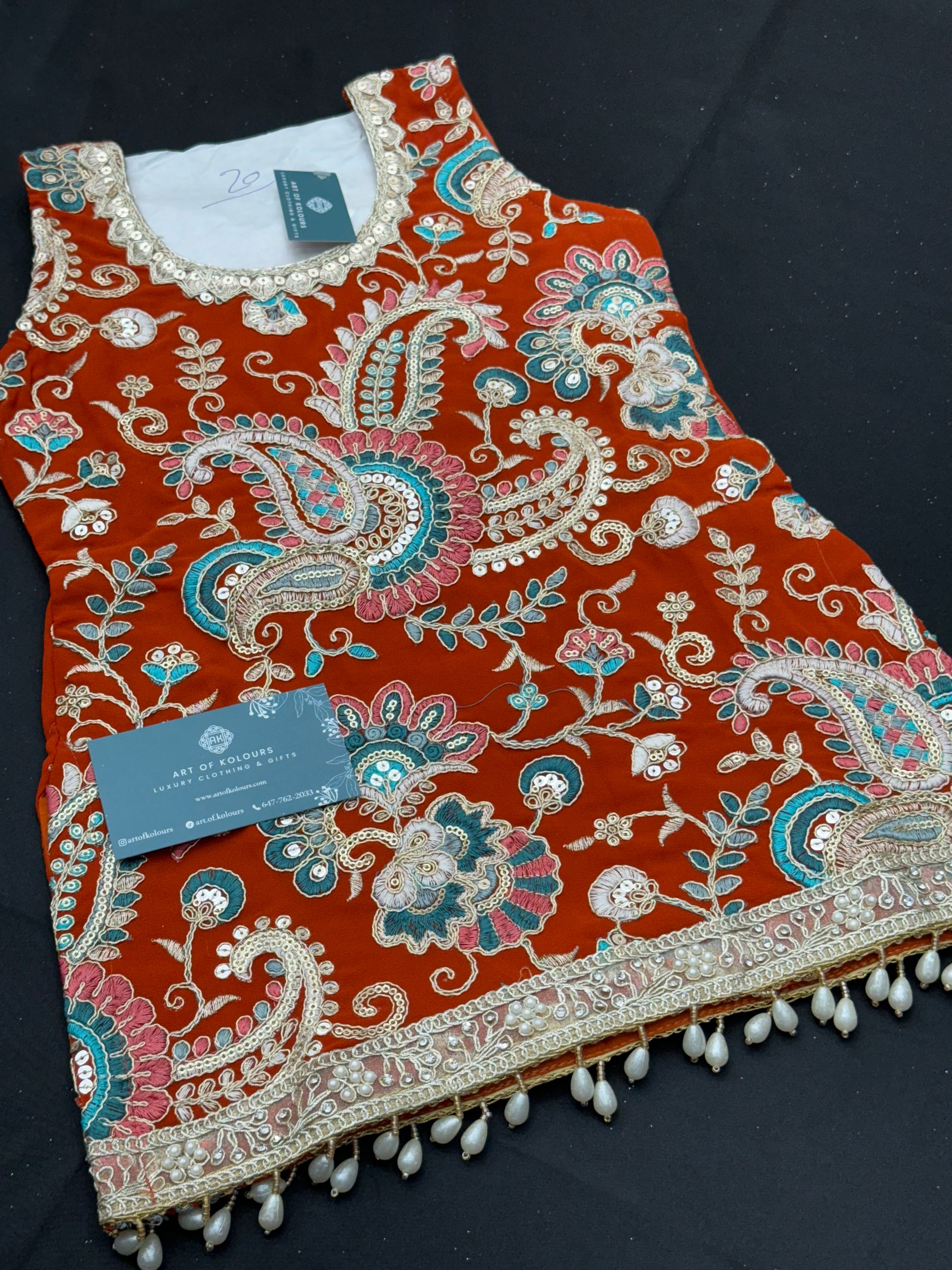 Introduce your little one to the world of ethnic fashion with our Naaz Kids Gharara Suit. This beautiful rust coloured suit features vibrant multi-coloured embroidery, adding a touch of elegance and charm. Made with high quality materials, it will provide comfort and style for your child. Perfect for any special occasion, make your child stand out with this stunning outfit.