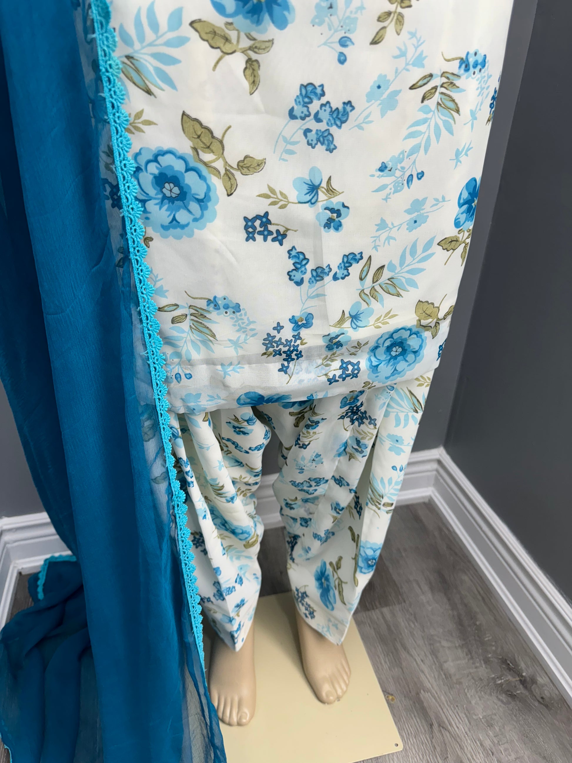 This Pari Salwar Suit features a stunning printed design, paired with a beautiful light dupatta. Made with high-quality Georgette, this traditional salwar suit is perfect for any occasion. Elevate your style with this elegant and unique outfit.