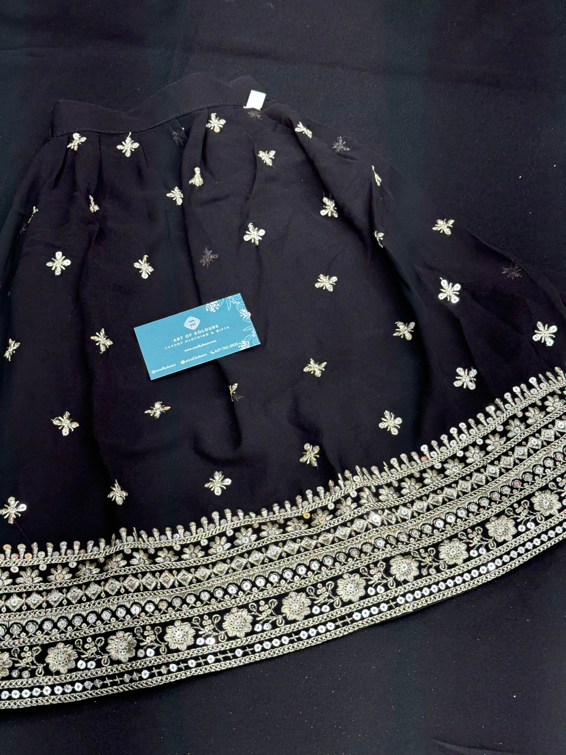 Introducing Nakhro Kids Lehenga, the perfect ensemble for your little one's special occasions. This black long top lehenga offers a stylish and comfortable fit, perfect for any event. Made with high-quality materials, it guarantees durability and long-lasting wear. Your child will stand out with this elegant and chic outfit.