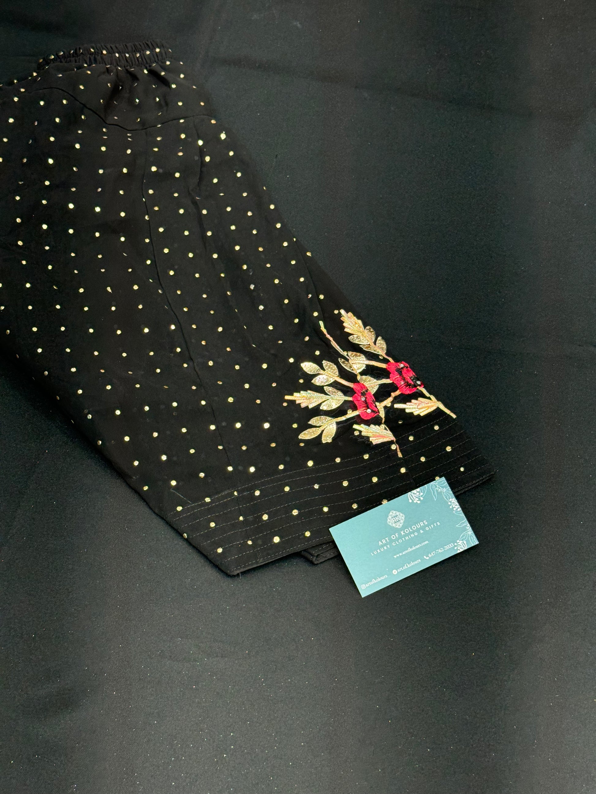 Introduce your little one to the world of ethnic fashion with our Pavi Kids Frock Salwar Suit. This beautiful black suit features vibrant gota pati work adding a touch of elegance and charm. Made with high quality materials, it will provide comfort and style for your child. Perfect for any special occasion, make your child stand out with this stunning outfit.