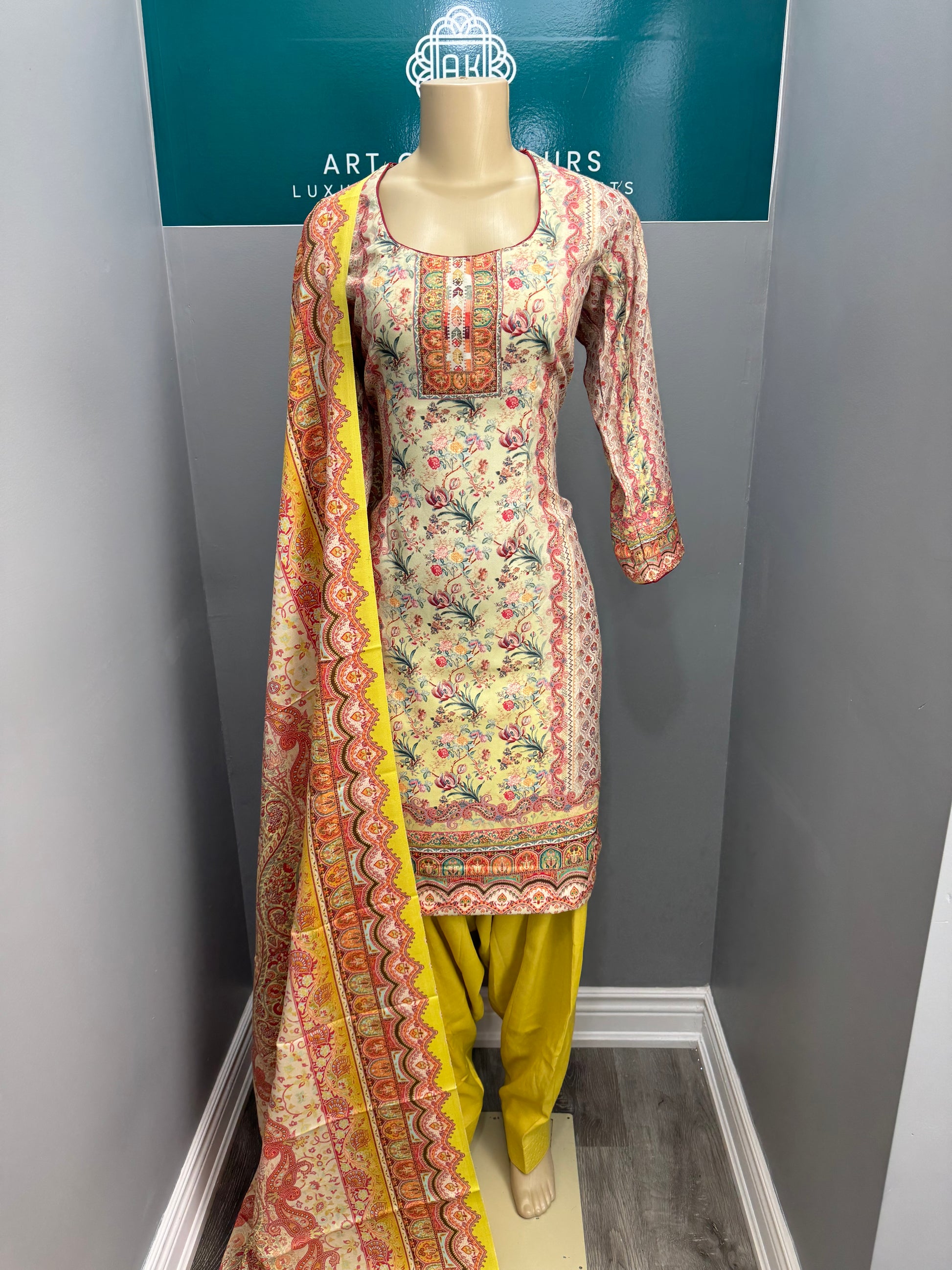 Enhance your style with this beautiful Printed Salwar Suit. This stunning suit features a gorgeous dupatta for a touch of elegance. Elevate your wardrobe with this must-have piece.
