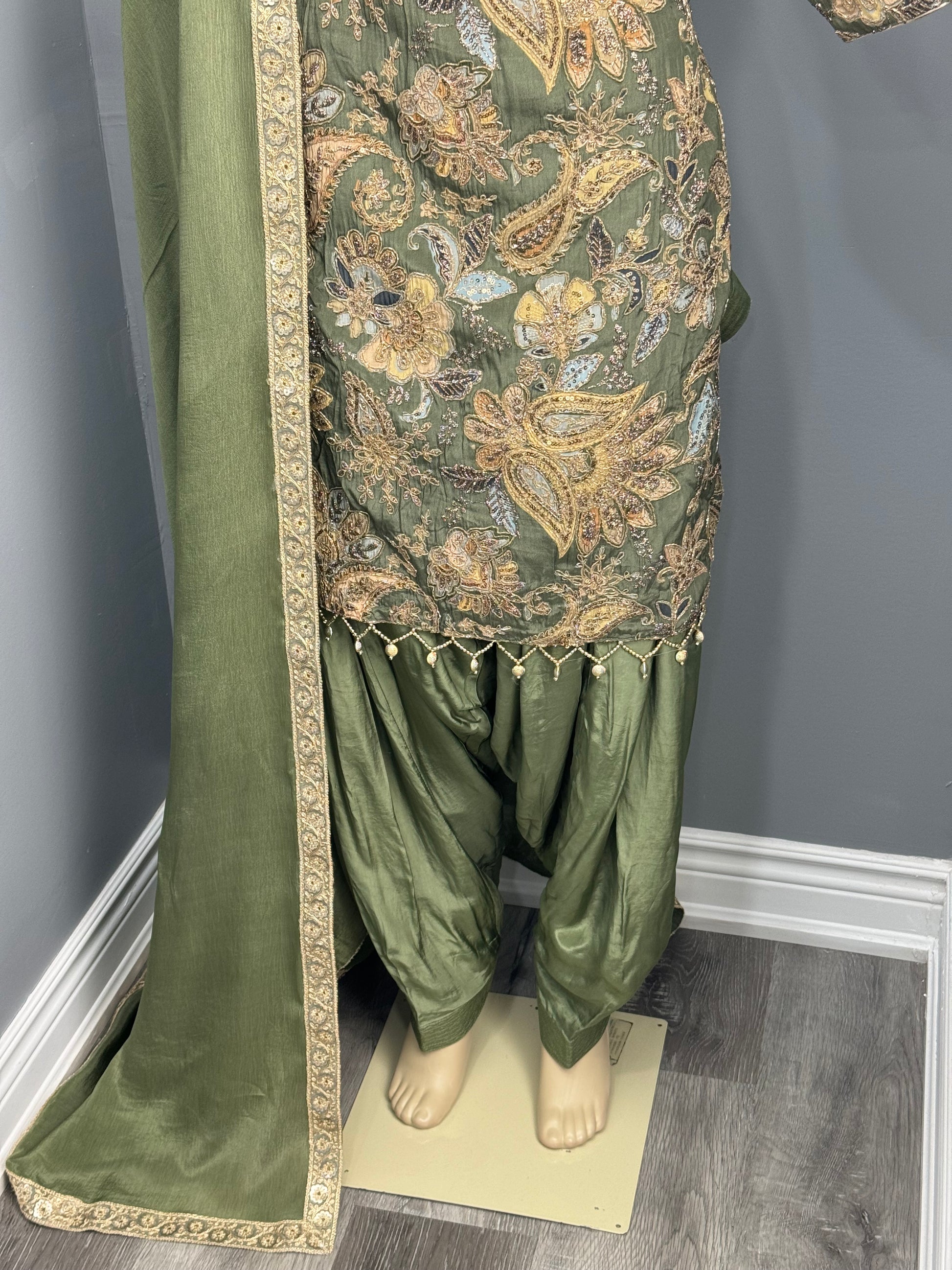 This Pure Crepe Printed Salwar Suit features a beautiful printed design with position work, paired with a pure chinon beautiful dupatta. This traditional salwar suit is perfect for any special occasion. Elevate your style with this elegant and unique outfit.