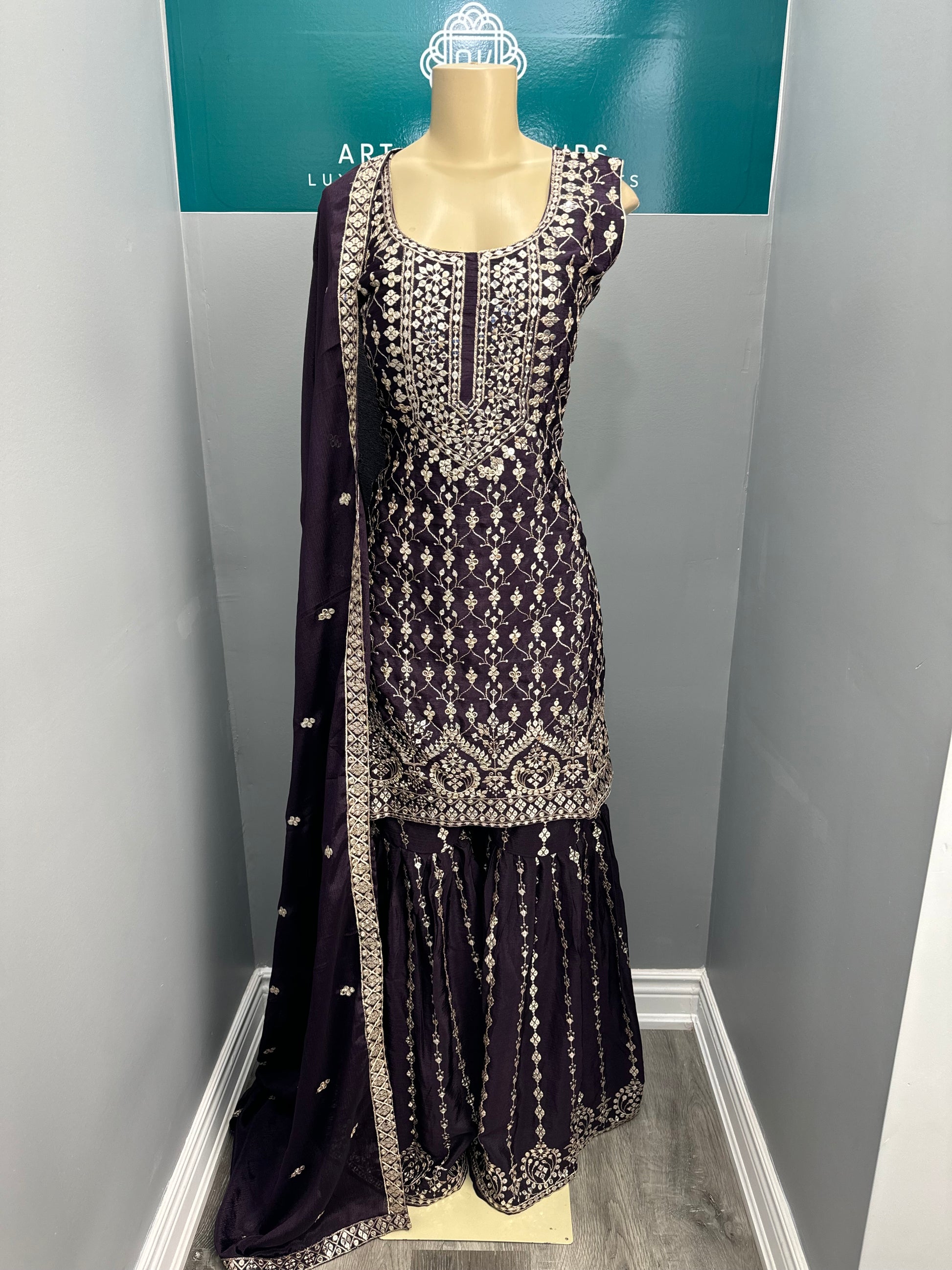 This Gharara Suit is expertly crafted with beautiful embroidery work, creating a truly beautiful and elegant garment. Made with the highest quality materials, it is both comfortable and stylish. Perfect for any occasion, this suit is sure to make you stand out in a crowd.