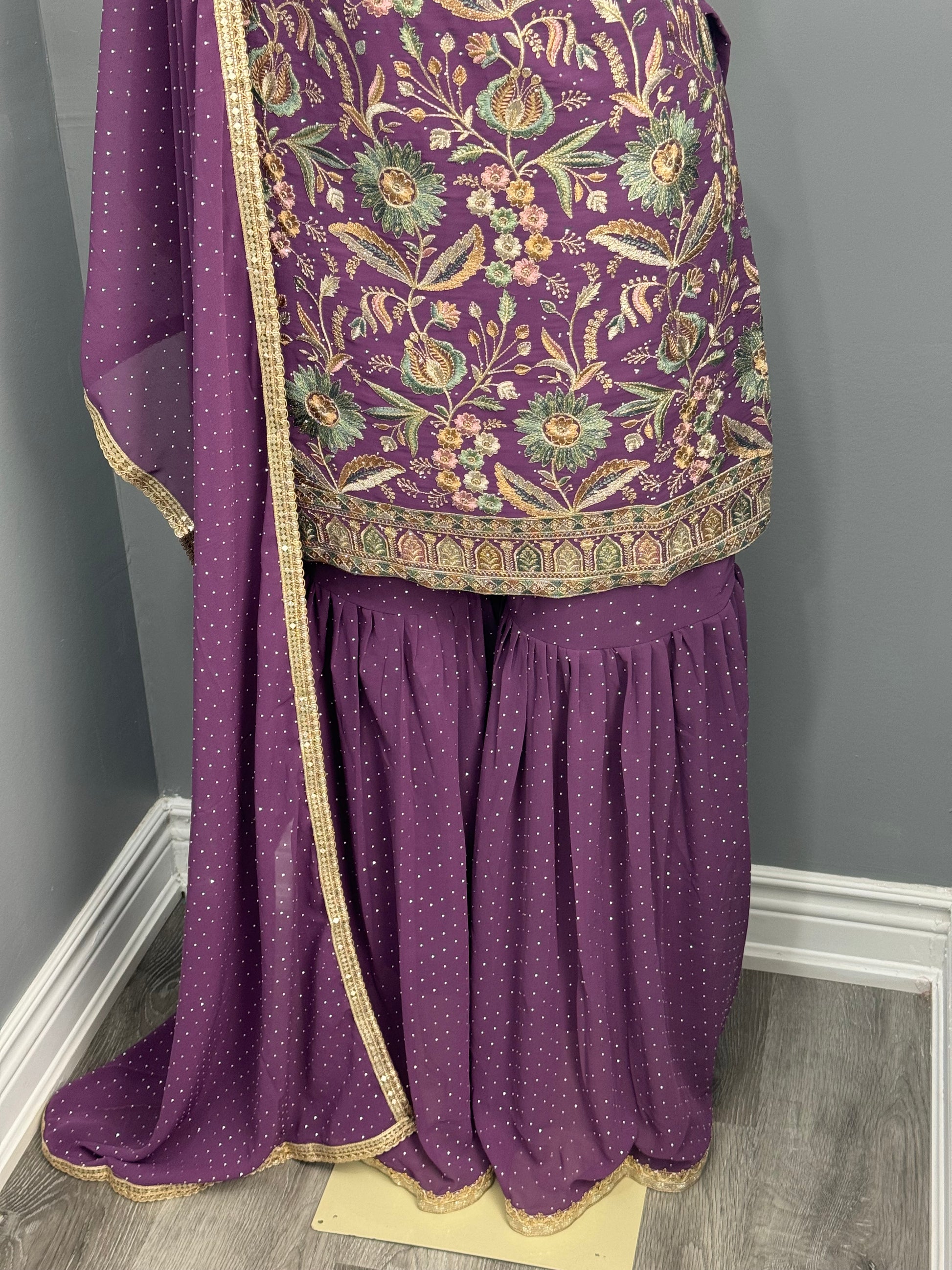 This Gharara Suit is expertly crafted with beautiful embroidery work, creating a truly beautiful and elegant garment. Made with the highest quality materials, it is both comfortable and stylish. Perfect for any occasion, this suit is sure to make you stand out in a crowd.