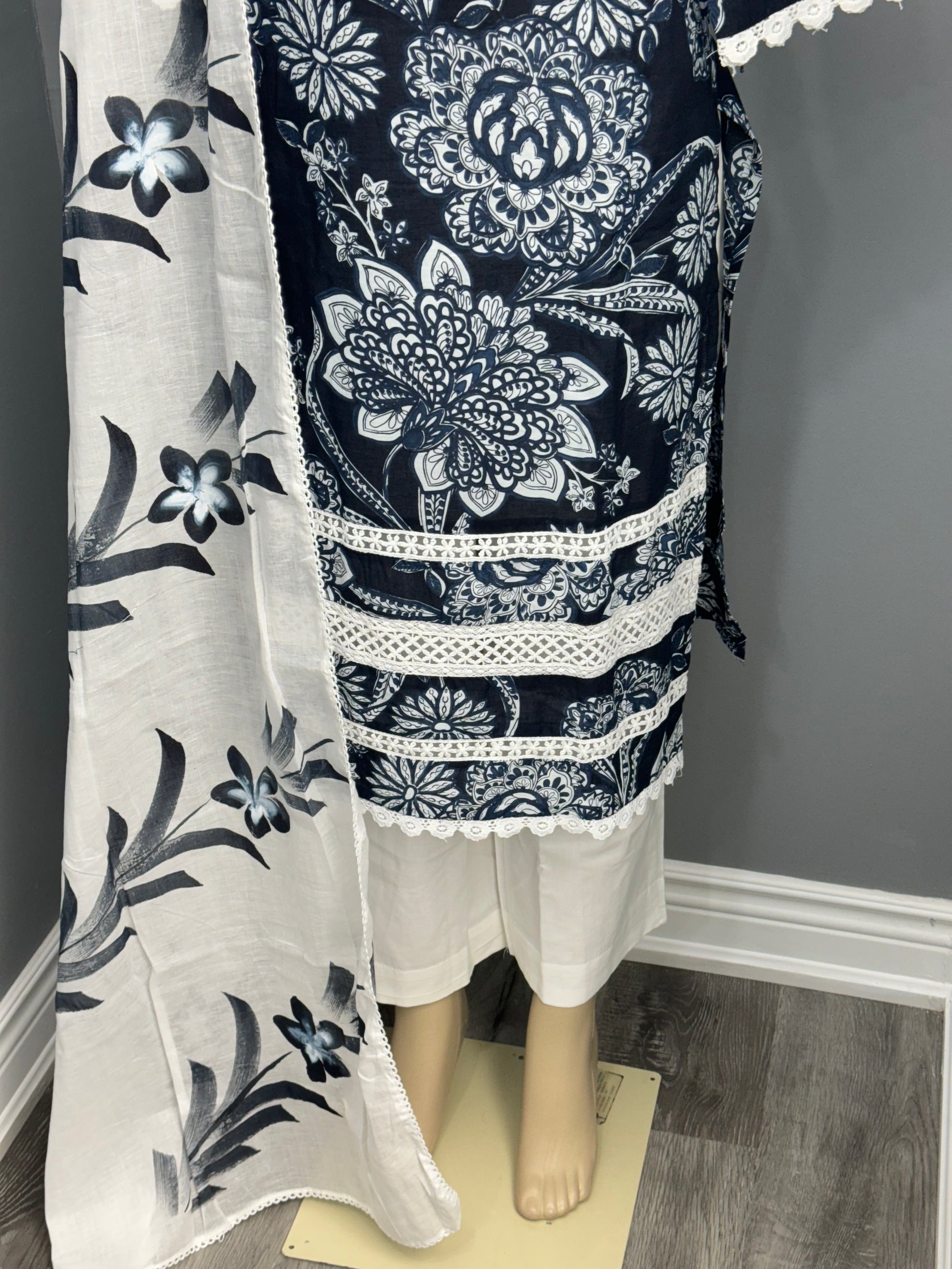 This readymade pant suit is expertly crafted with beautiful floral printed fabric, creating a truly beautiful and elegant garment. With a beautiful painted dupatta to go along! Made with the highest quality materials, it is both comfortable and stylish. Perfect for any semi formal occasion, this suit is sure to make you stand out in a crowd.
