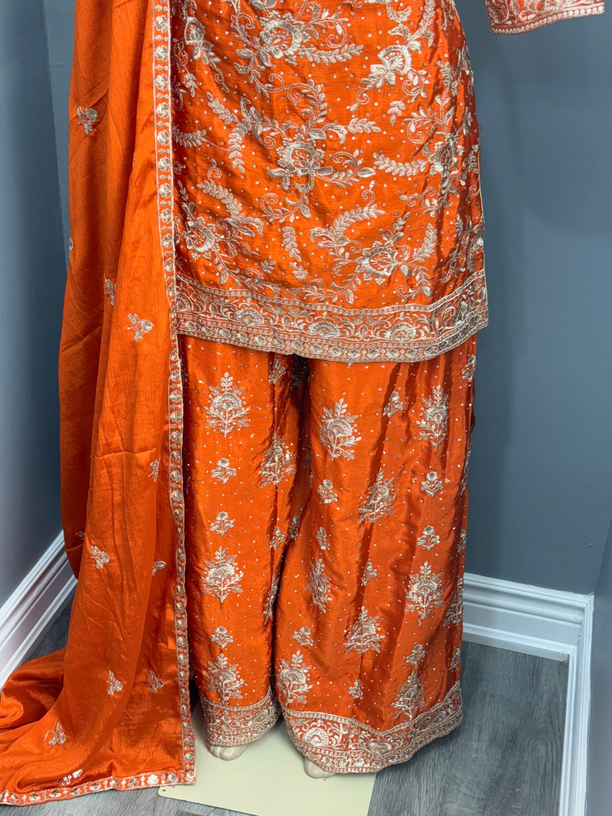 This readymade Sharara Suit is expertly crafted with beautiful embroidery work, creating a truly beautiful and elegant garment. Made with the highest quality materials, it is both comfortable and stylish. Perfect for any occasion, this suit is sure to make you stand out in a crowd.