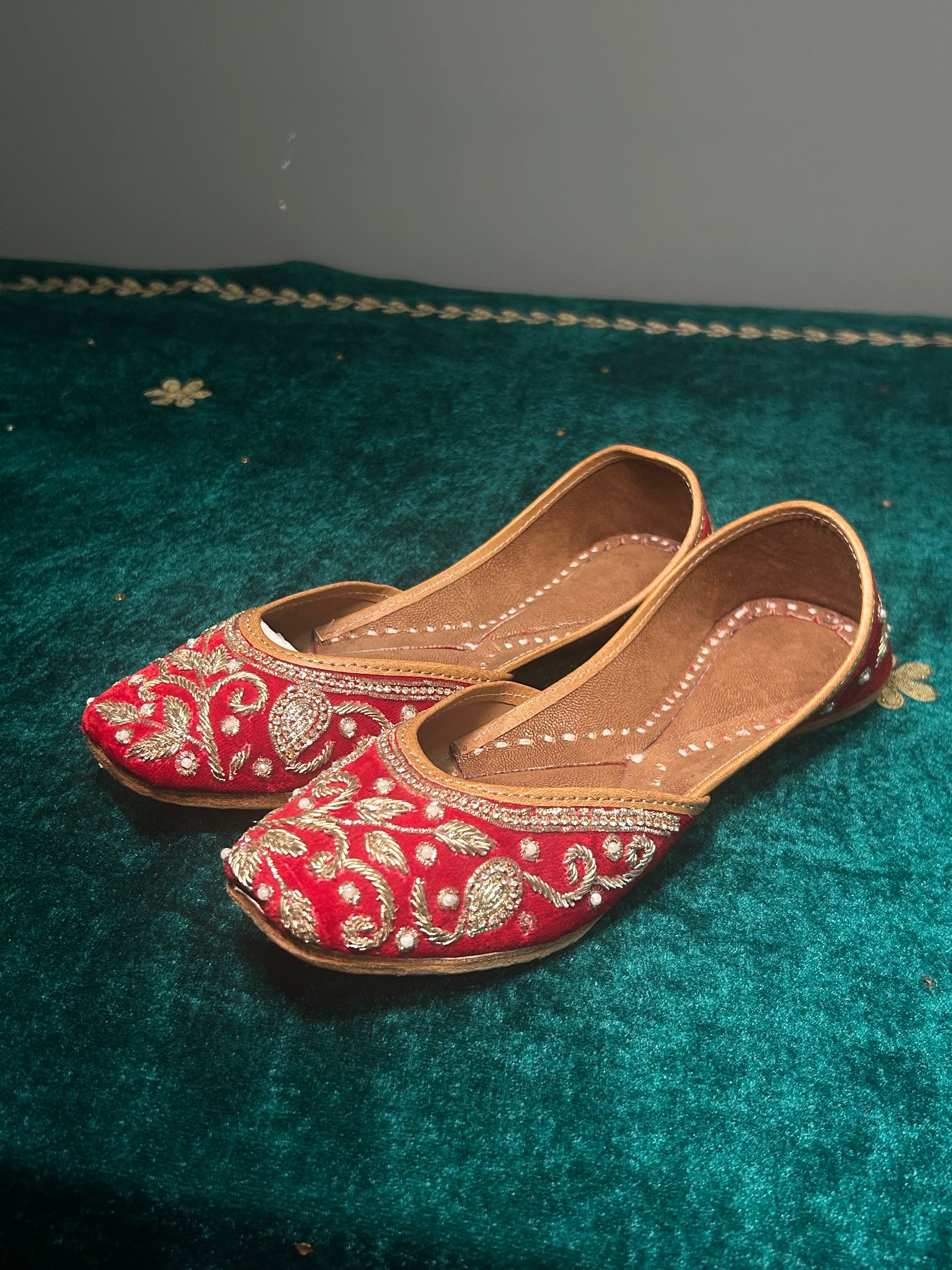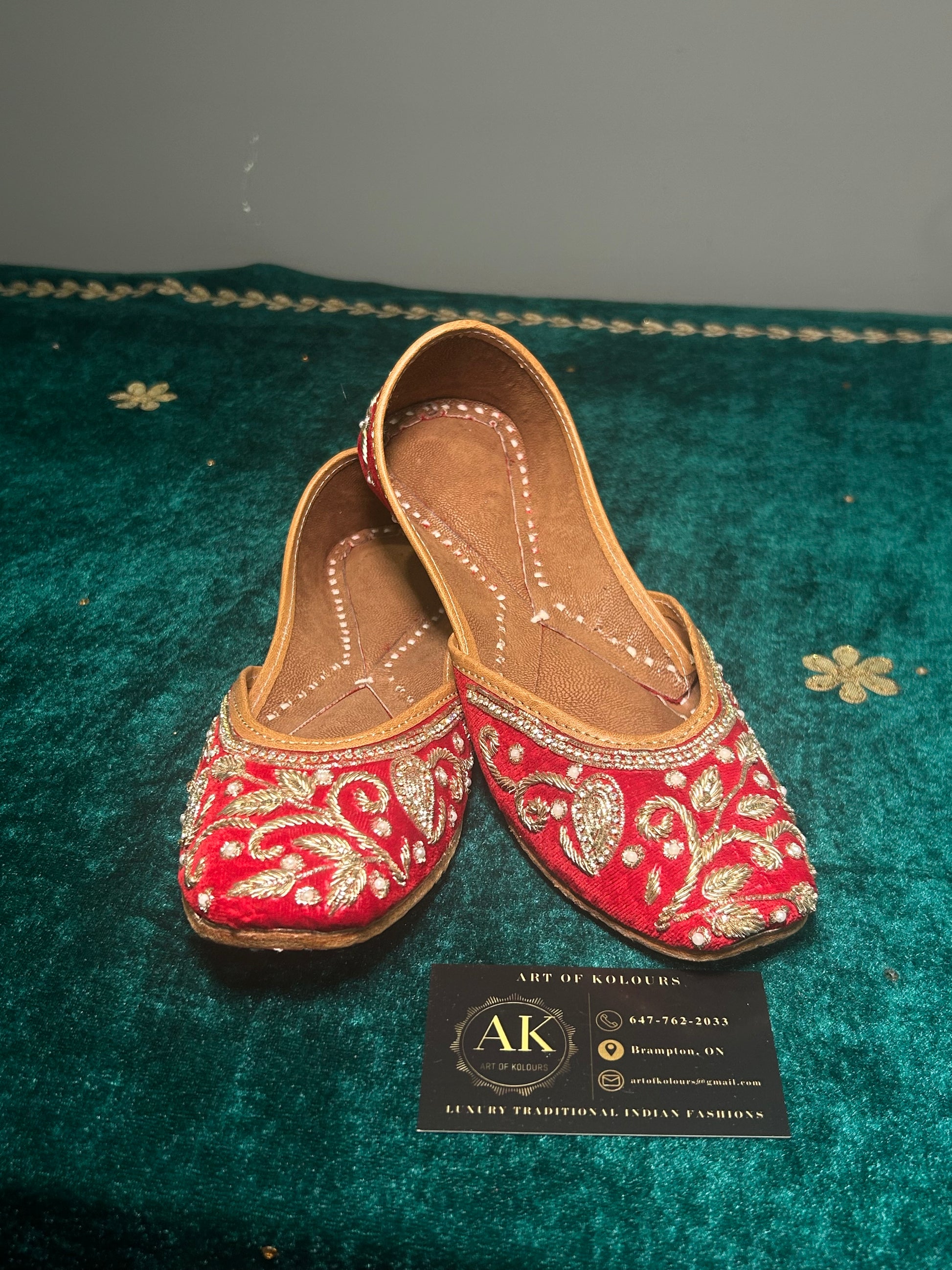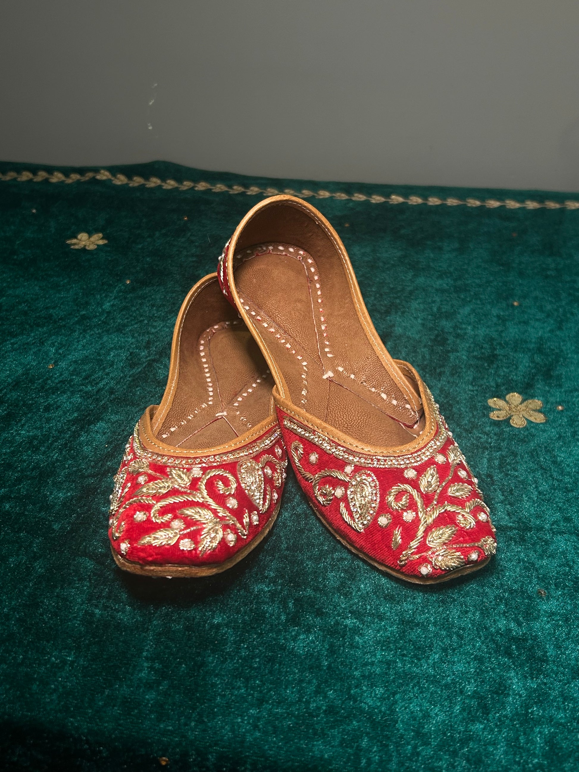 Red Dubka Work Jutti