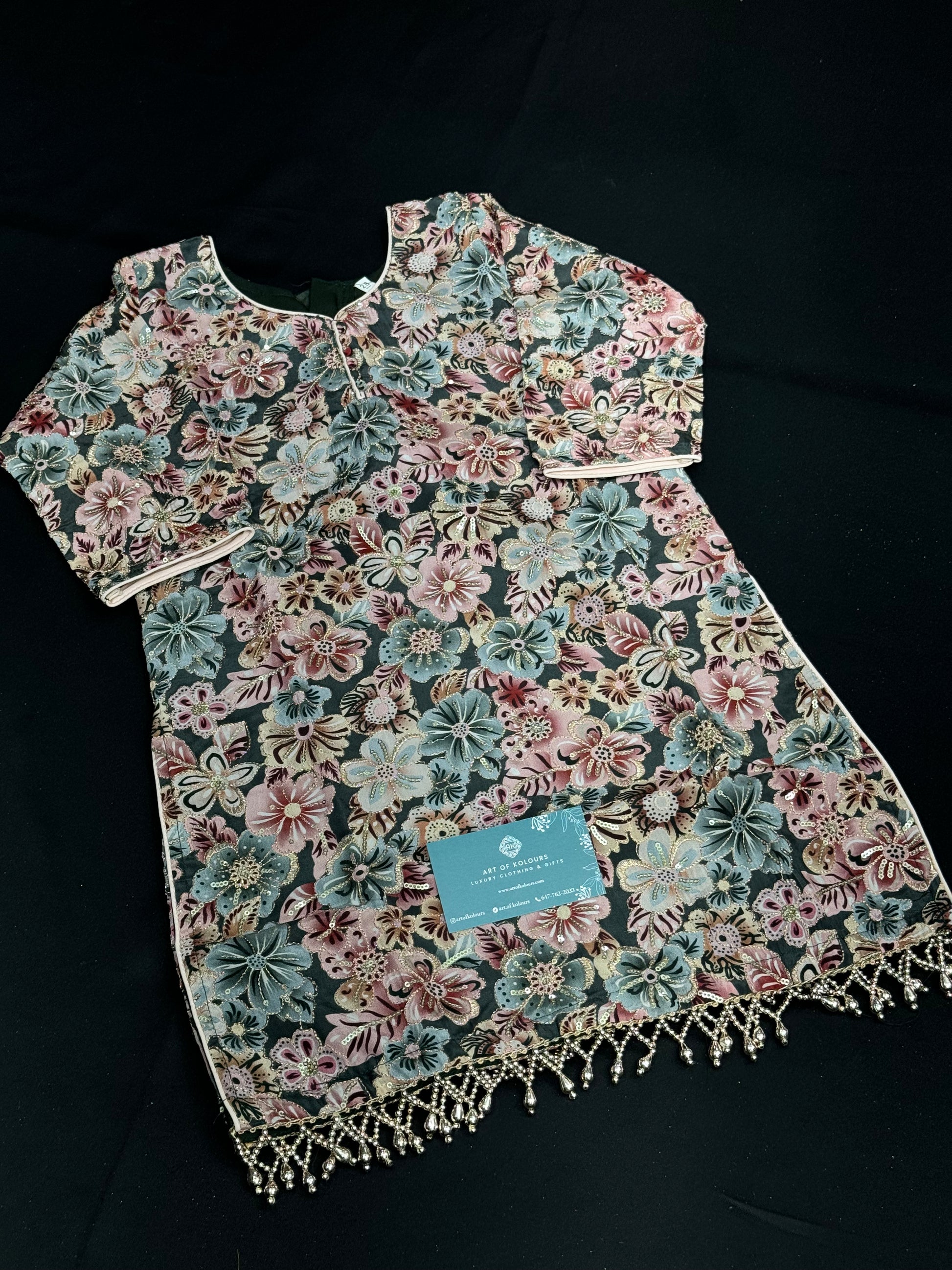 Introduce your little one to the world of ethnic fashion with our Reet Kids Salwar Suit. This beautiful printed suit features vibrant position work adding a touch of elegance and charm. Made with high quality materials, it will provide comfort and style for your child. Perfect for any special occasion, make your child stand out with this stunning outfit.