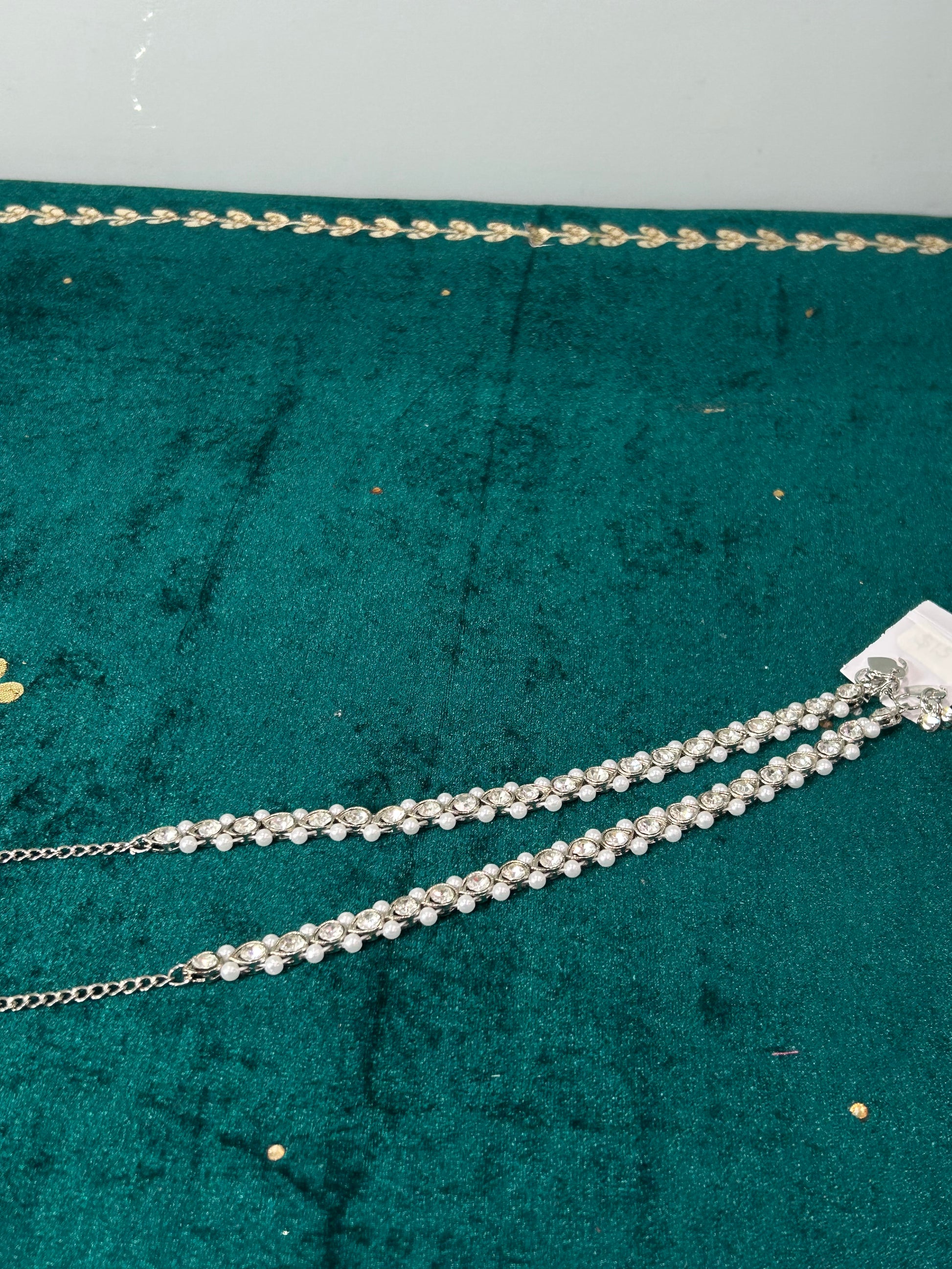 Add rhythm and sparkle to your steps with our exquisite collection of Jhanjhar (traditional anklets). Crafted with intricate detailing and adorned with shimmering embellishments, these anklets create a melodious jingling sound with every movement.