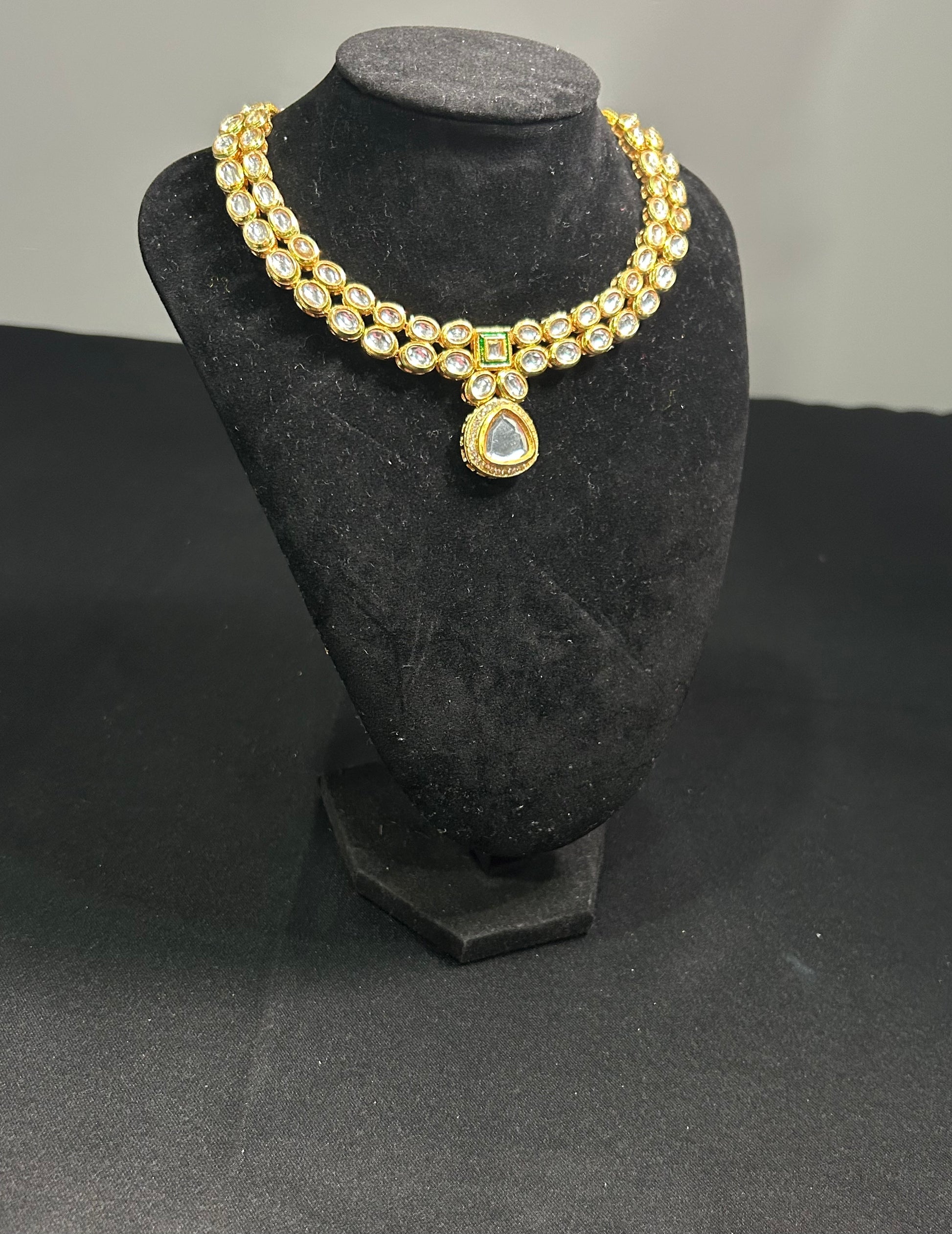 This elegant Necklace set will add a touch of glamour to any outfit. The intricate designs of the necklace and earrings, combined with the beautiful stones, will make you stand out in any crowd. Handcrafted with precision, this set is sure to impress.