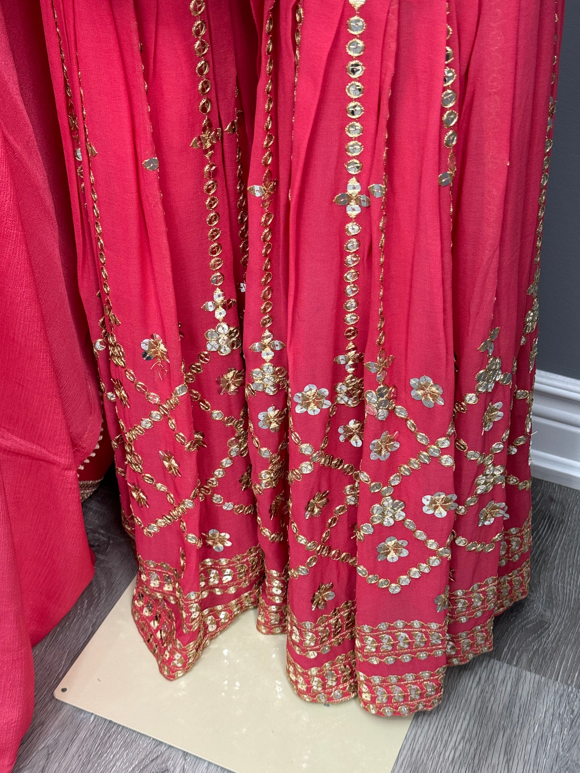 This Savita Gharara Suit is expertly crafted with beautiful work, creating a truly beautiful and elegant garment. Made with the highest quality materials, it is both comfortable and stylish. Perfect for any occasion, this suit is sure to make you stand out in a crowd.