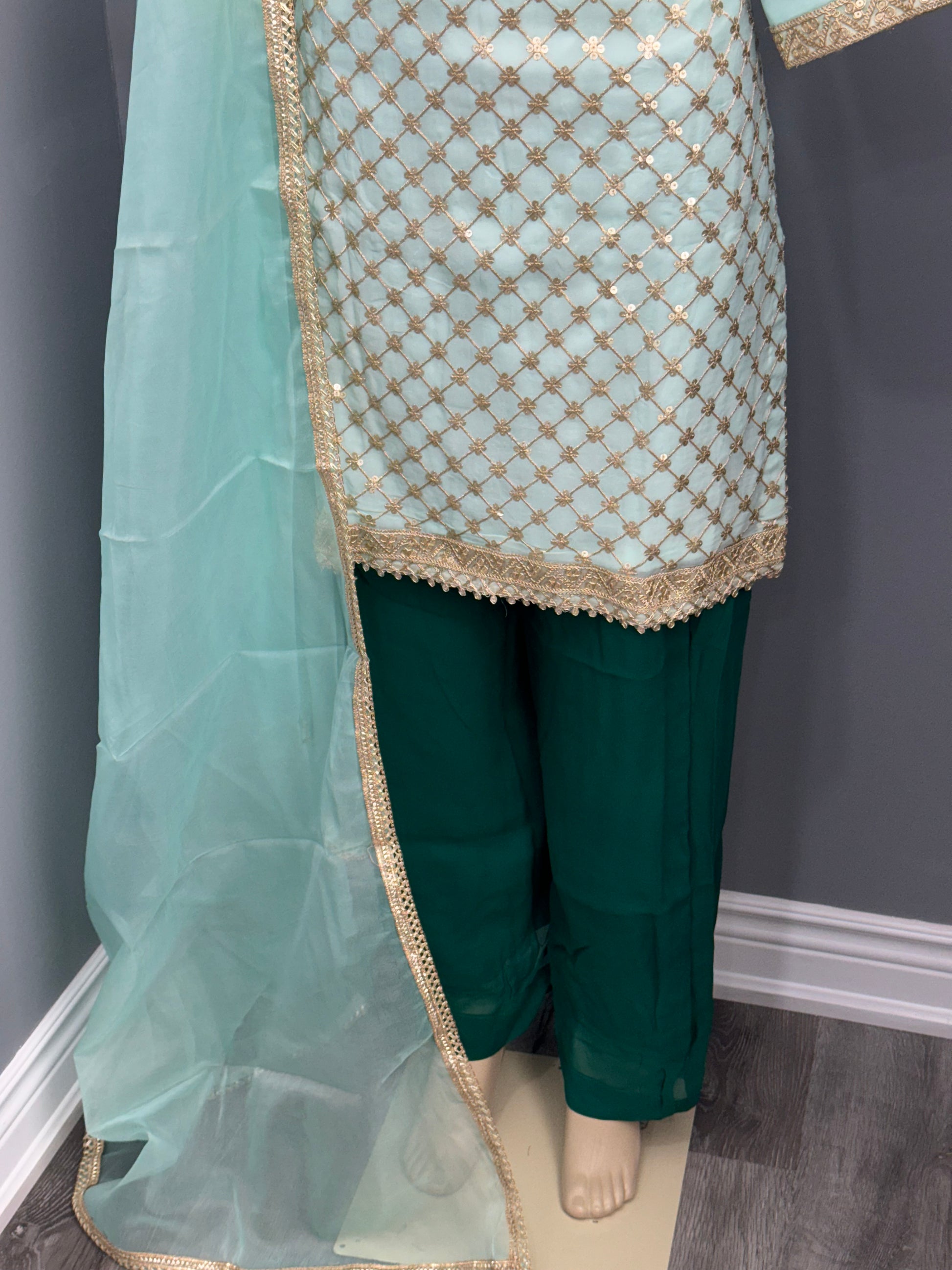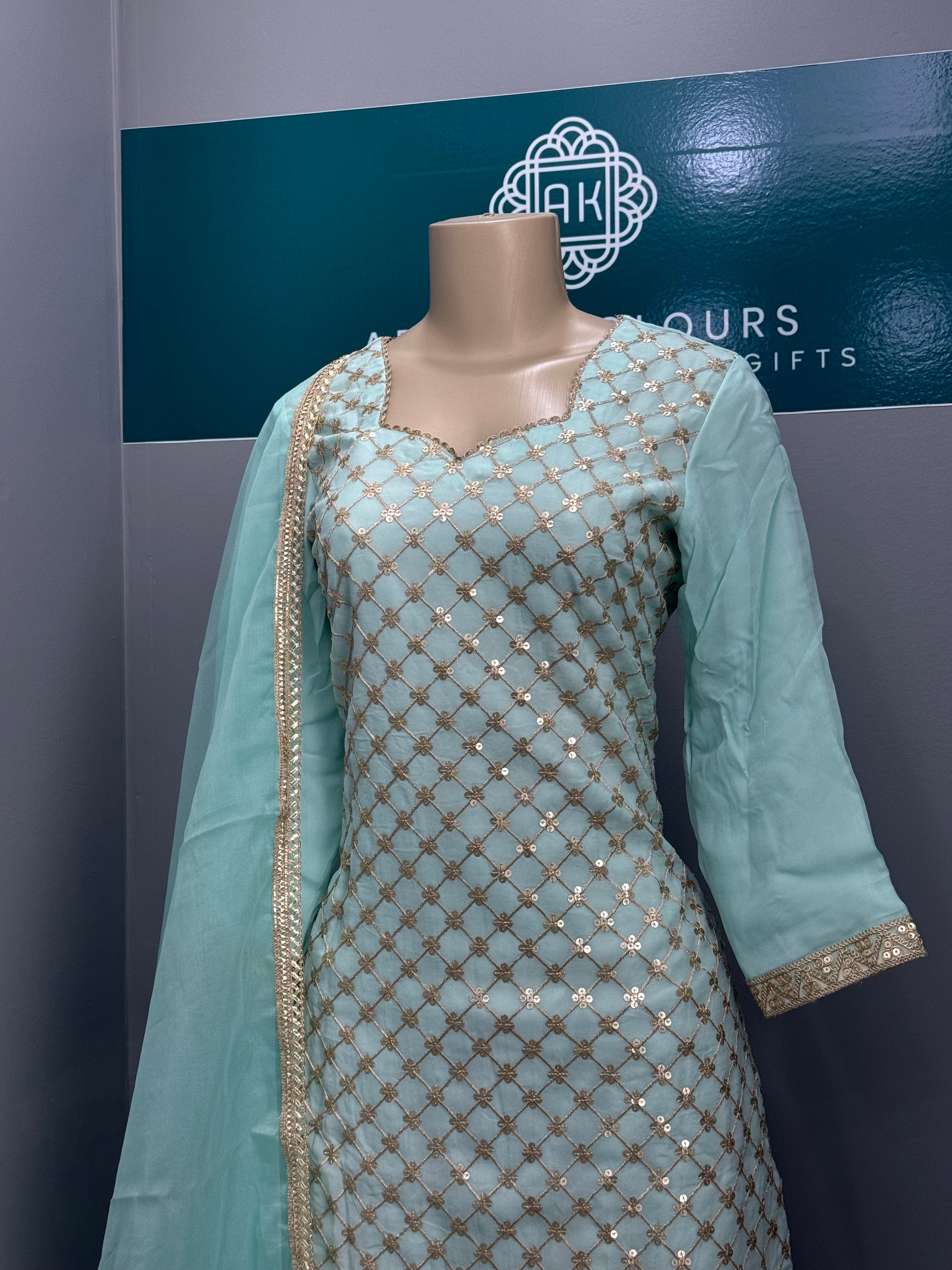 Enhance your style with this beautiful Plazo Suit. This stunning suit features intricate sequin work for a touch of elegance. Dupatta that completes the look. Elevate your wardrobe with this must-have piece.