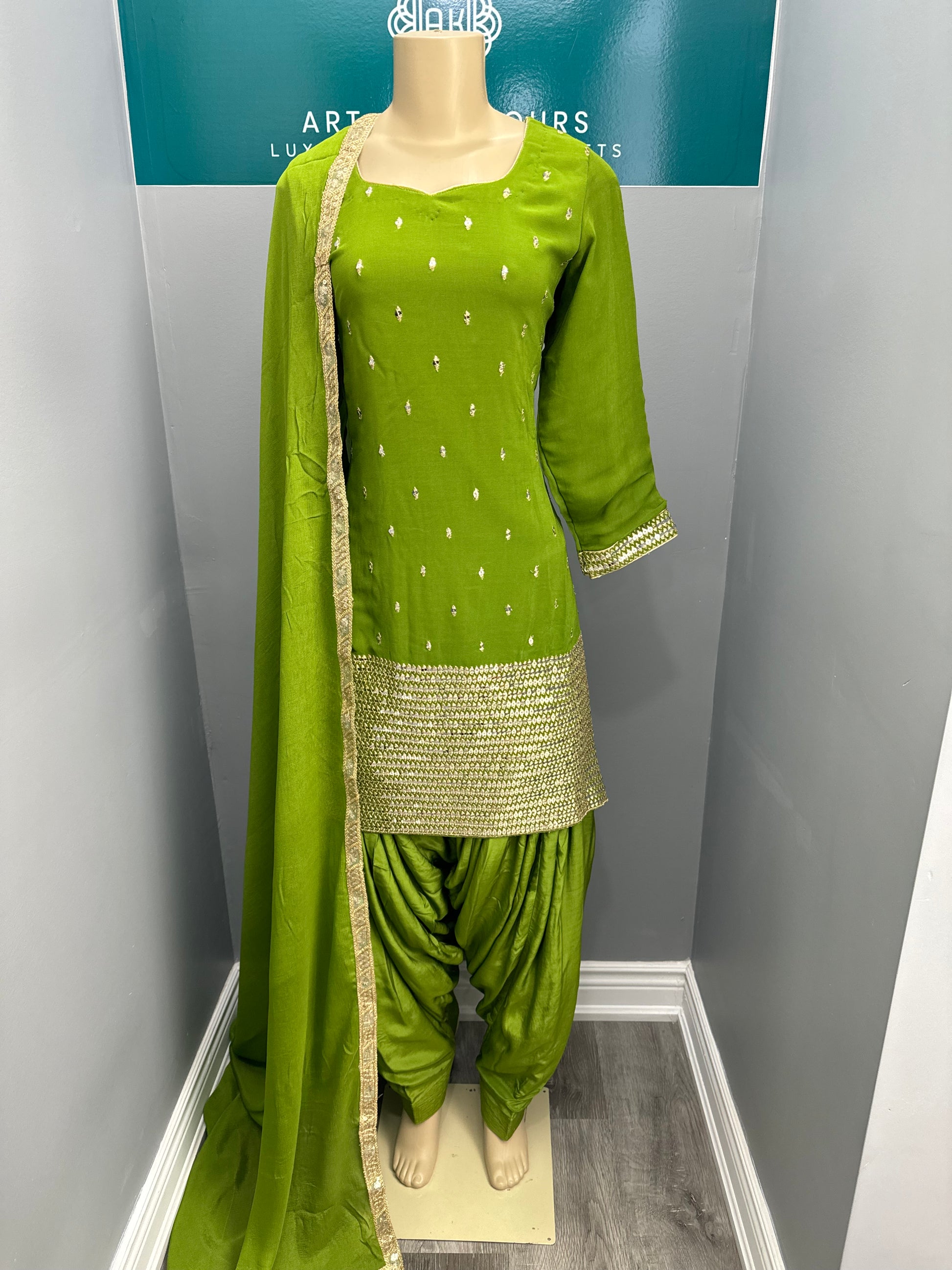 Enhance your style with this beautiful Sequence Work Salwar Suit. This stunning suit features gorgeous embroidery and sequences for a touch of elegance. The plain dupatta completes the look. Elevate your wardrobe with this must-have piece.
