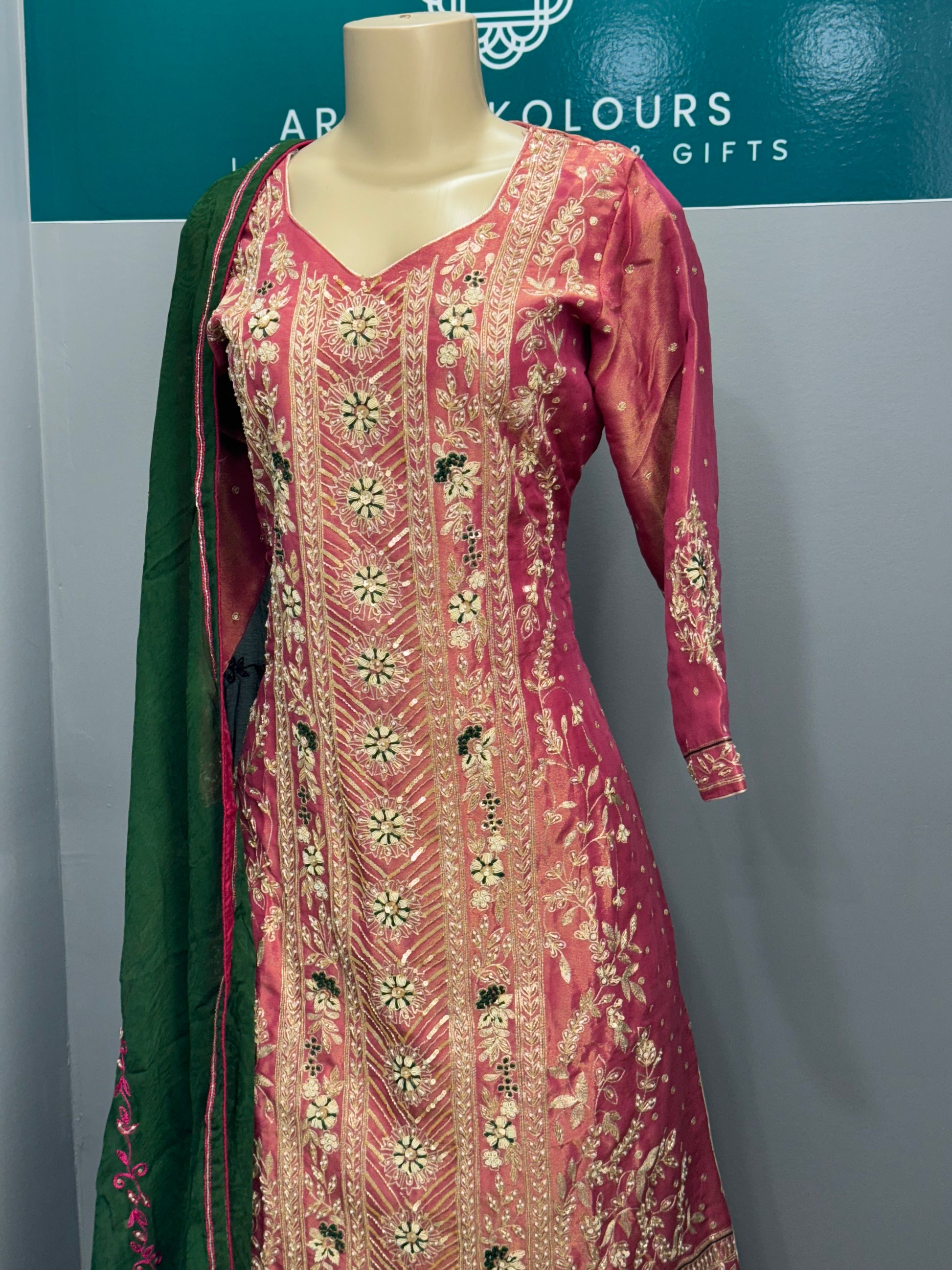 Enhance your style with this beautiful Handwork Salwar Suit. This stunning suit features gorgeous Handwork for a touch of elegance. The handwork dupatta completes the look. Elevate your wardrobe with this must-have piece.