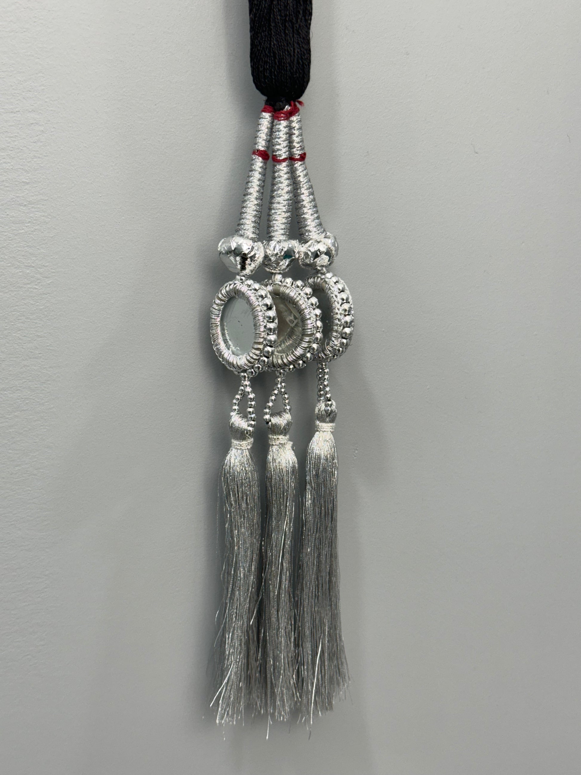 The Parandi is a traditional accessory often used in Punjabi culture to adorn braids. The double-layer design adds a rich and intricate aesthetic, with purple thread complementing the opulence of gold embellishments. It’s typically crafted for festive occasions, weddings, or cultural events, pairing beautifully with vibrant Punjabi suits or lehengas to enhance the overall look.