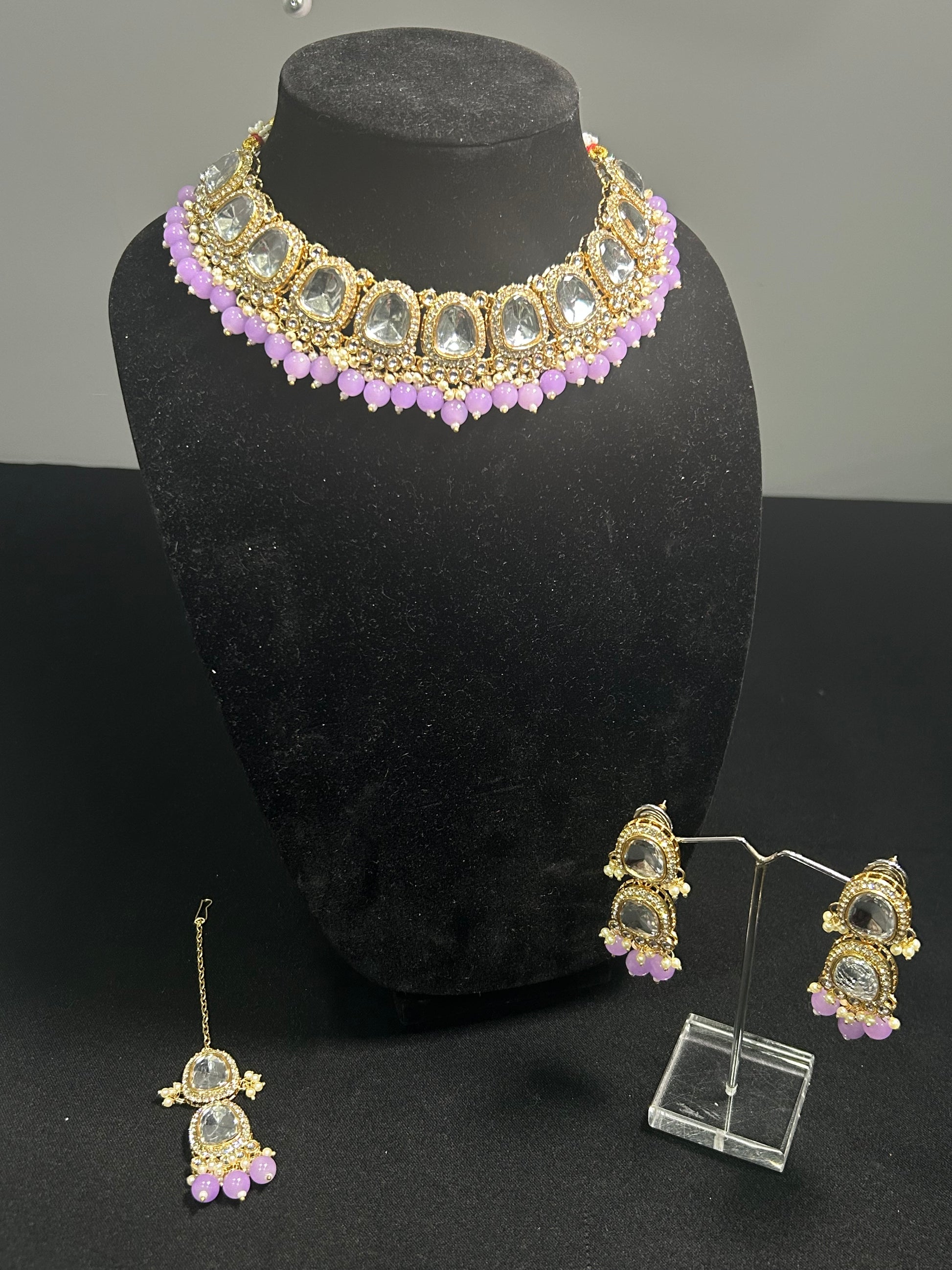 This elegant Necklace set will add a touch of glamour to any outfit. The intricate designs of the necklace and earrings, combined with the beautiful stones, will make you stand out in any crowd. Handcrafted with precision, this set is sure to impress.