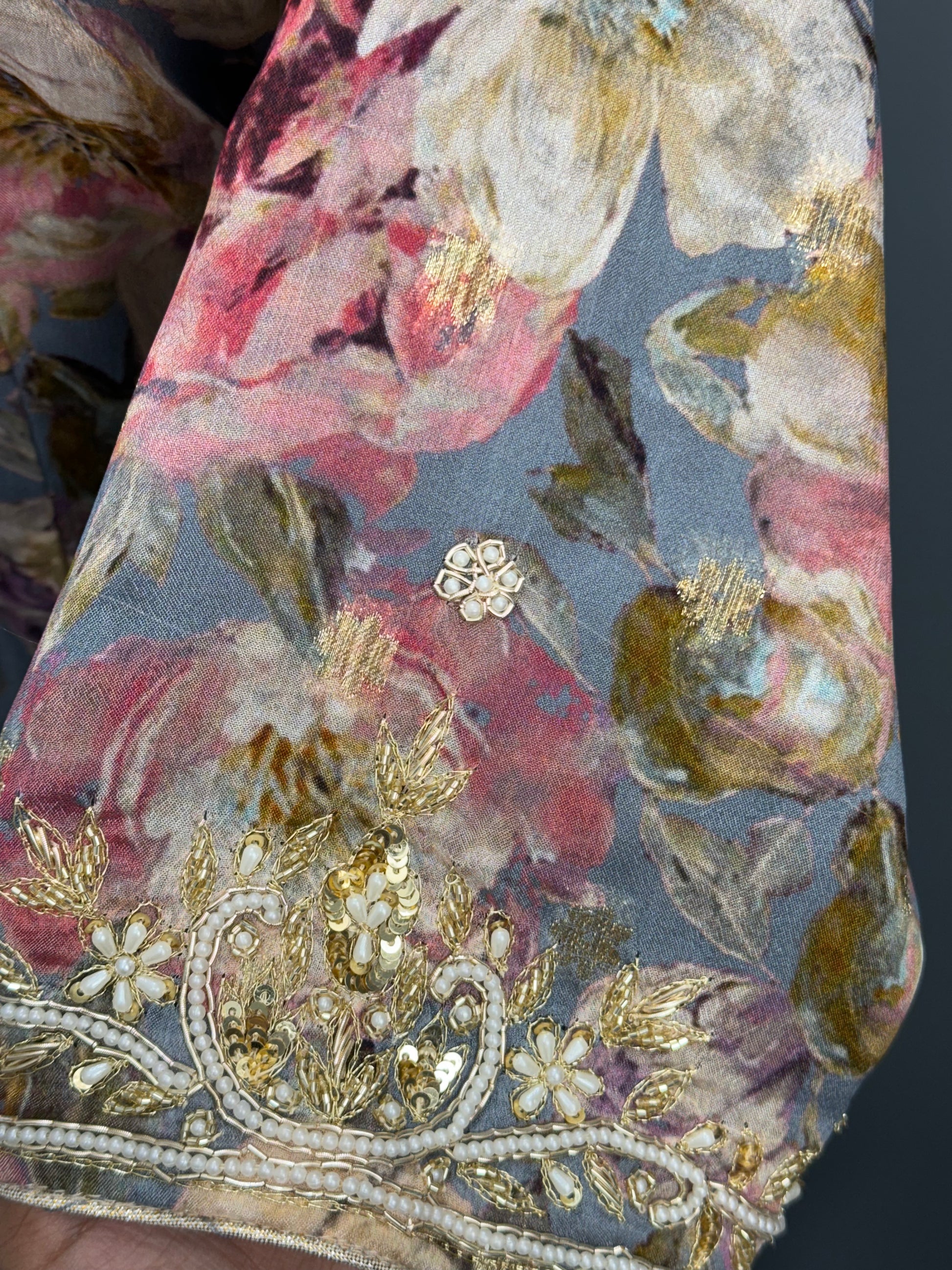 Sonam Printed Handwork Salwar Suit Grey